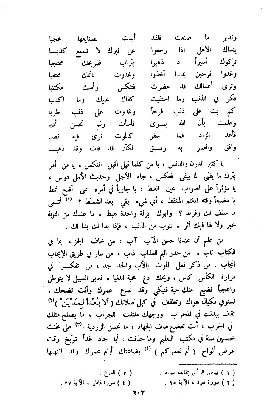 (فكر فِي الذَّنب وَمَا احتقبت ... كَفاك عَلَيْك وَمَا اكتسبا)