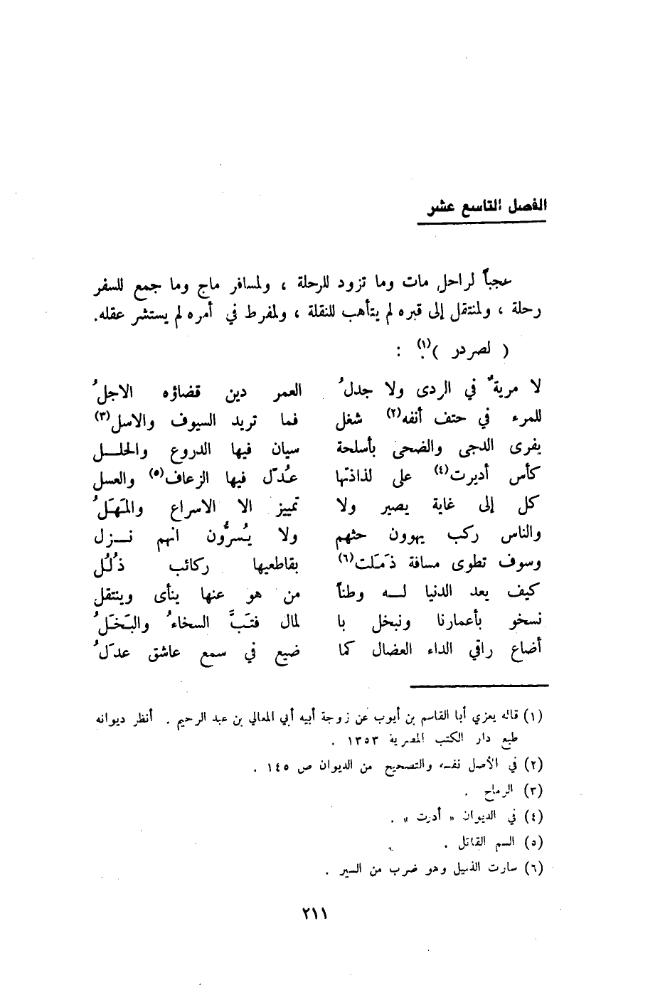 (لَا مرية فِي الردى وَلَا جدل ... الْعُمر دين قَضَاؤُهُ الْأَجَل)
