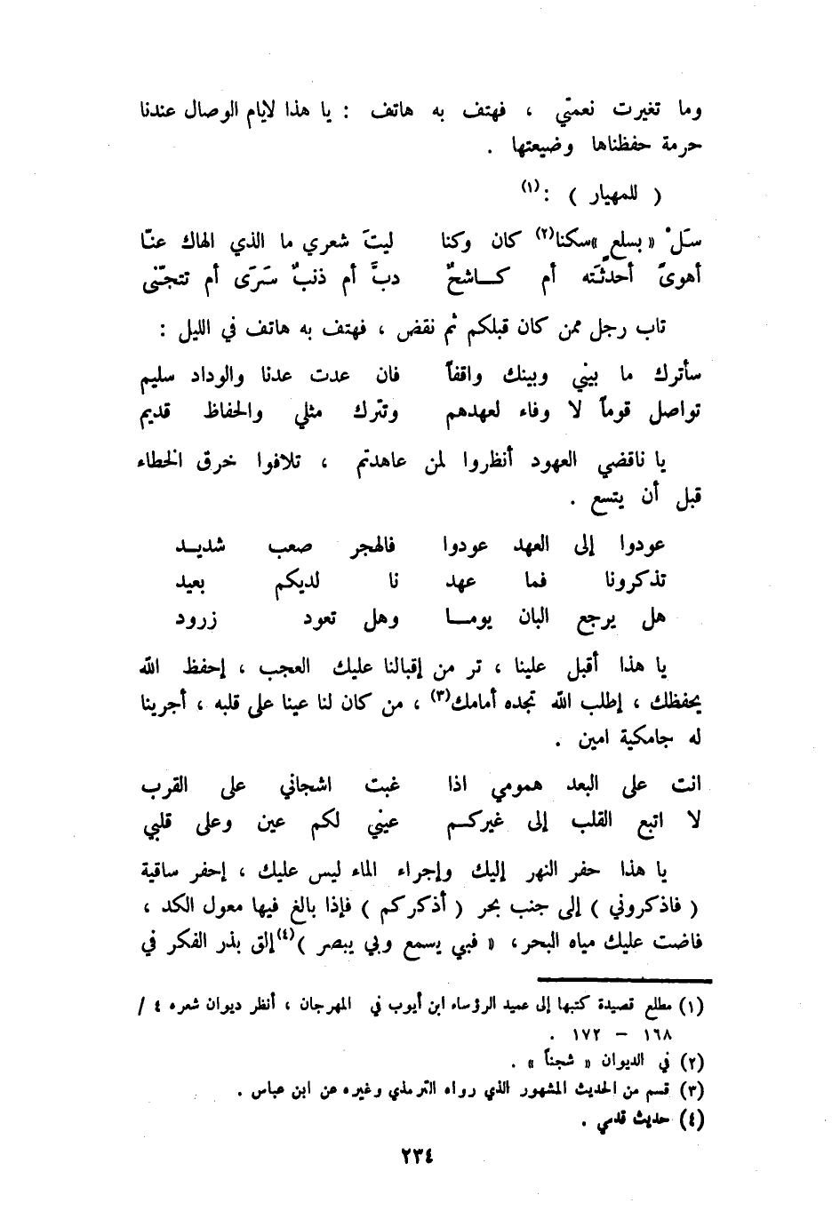 وَمَا تَغَيَّرت نعمتي فَهَتَفَ بِهِ هَاتِف يَا هَذَا لأيام الْوِصَال عندنَا حُرْمَة حفظناها وضيعتها