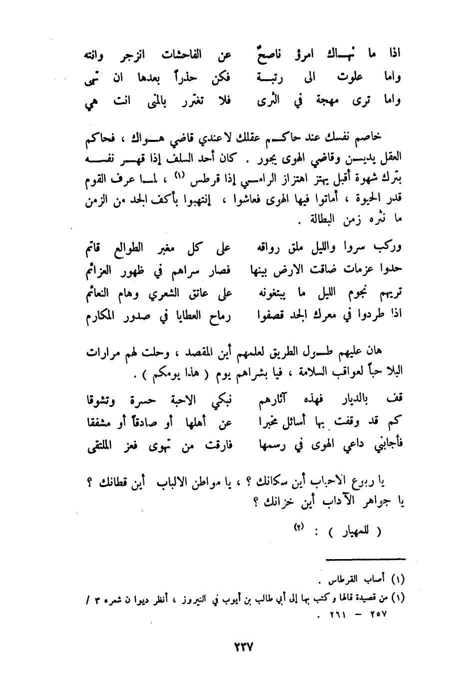 يَا ربوع الأحباب أَيْن سكانك يَا مَوَاطِن الْأَلْبَاب أَيْن قطانك يَا جَوَاهِر الْآدَاب أَيْن خزانك