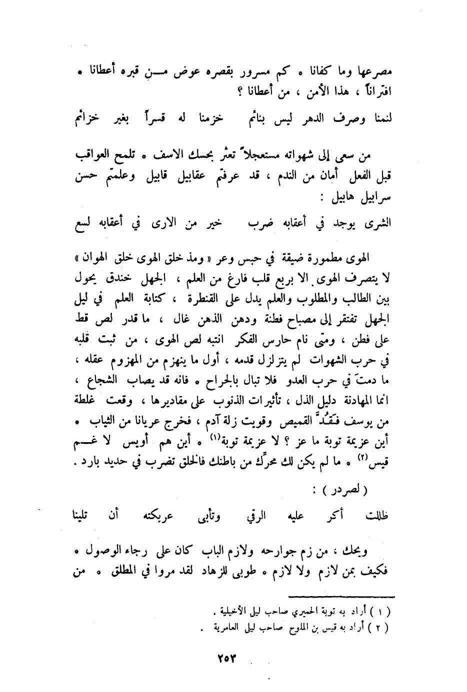 مصرعها وَمَا كفانا كم مسرور بقصره عوض من قَبره أَعْطَانَا افترانا هَذَا الْأَمْن من أَعْطَانَا