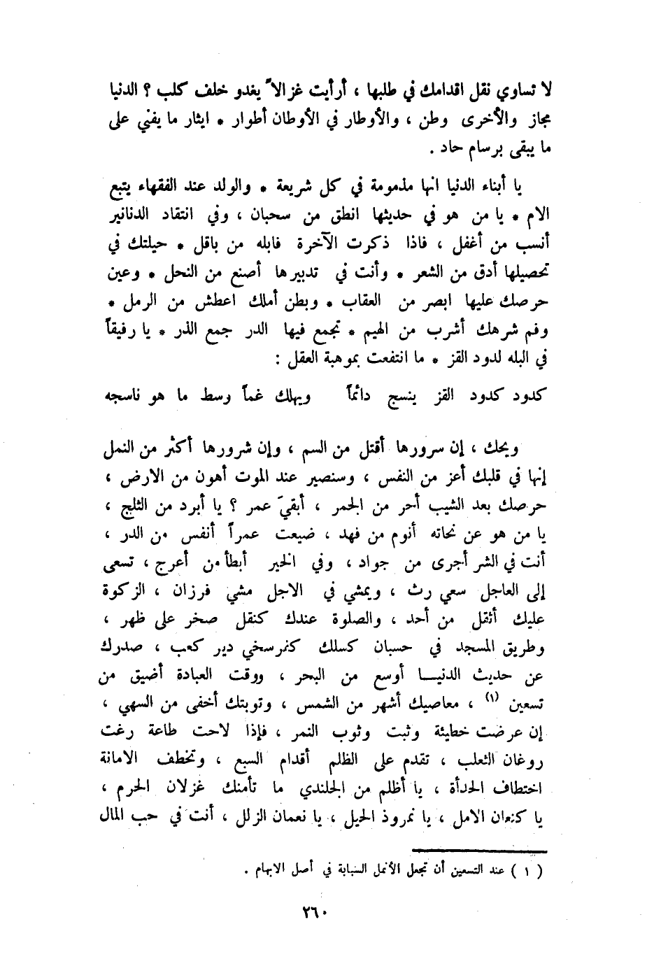 لَا تَسَاوِي نقل أقدامك فِي طلبَهَا أَرَأَيْت غزالا يَغْدُو خلف كلب الدُّنْيَا مجَاز وَالْأُخْرَى وَطن والأوطار فِي الأوطان أطوار ايثار مَا يفني على مَا يبْقى برسام حاد