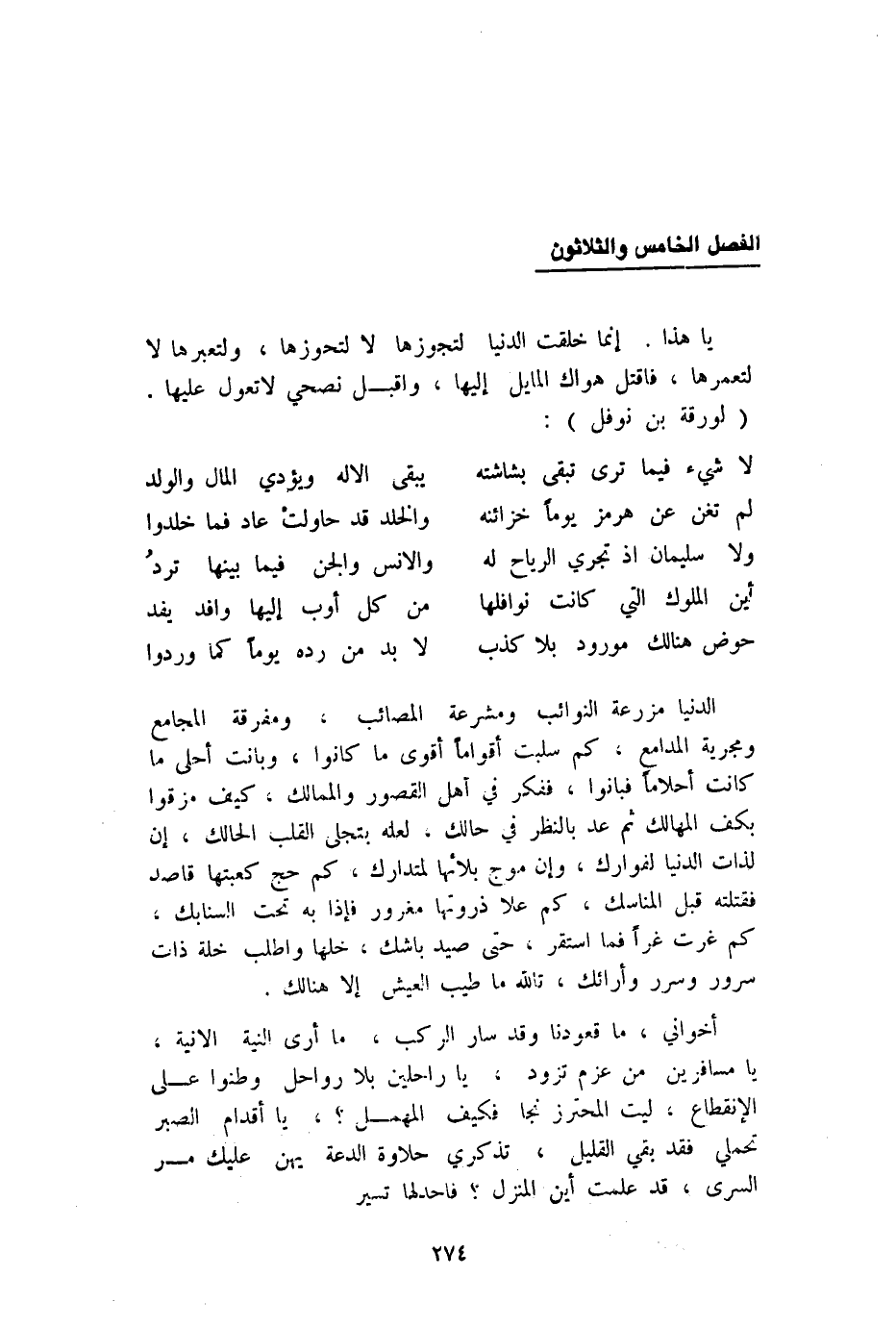 يَا هَذَا إِنَّمَا خلقت الدُّنْيَا لتجوزها لَا لتحوزها ولتعبرها لَا لتعمرها فَاقْتُلْ هَوَاك المايل إِلَيْهَا وَاقْبَلْ نصحي لَا تعول عَلَيْهَا