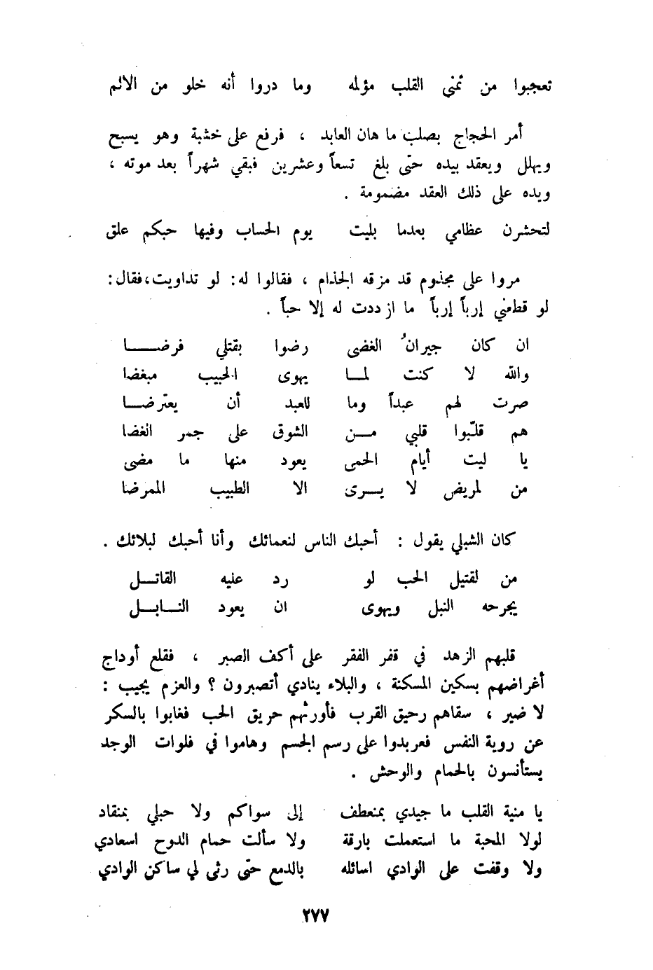 كَانَ الشبلي يَقُول أحبك النَّاس لنعمائك وَأَنا أحبك لبلائك