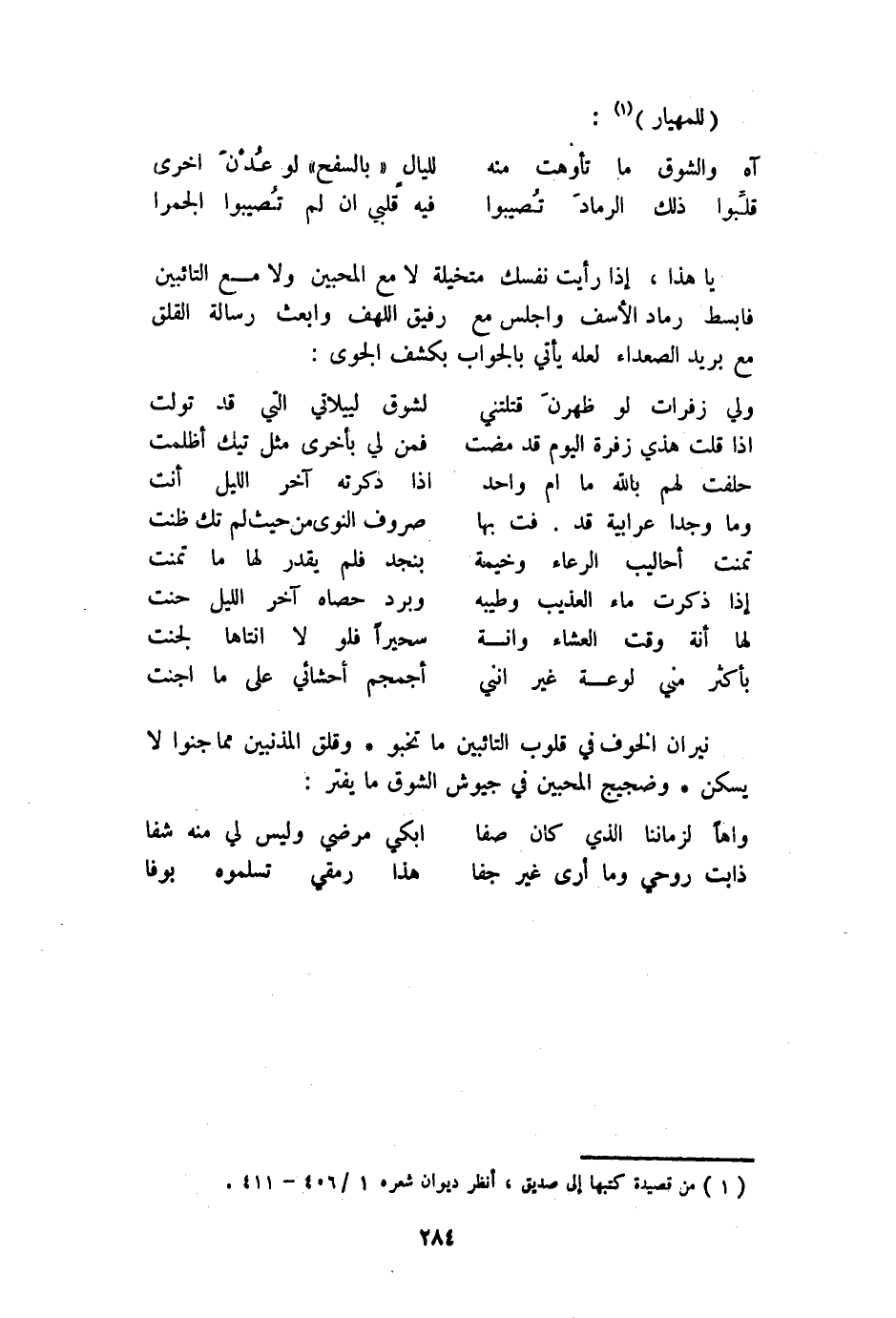 (آه والشوق مَا تأوهت مِنْهُ ... لليال بالسفح لَو عدن أُخْرَى)