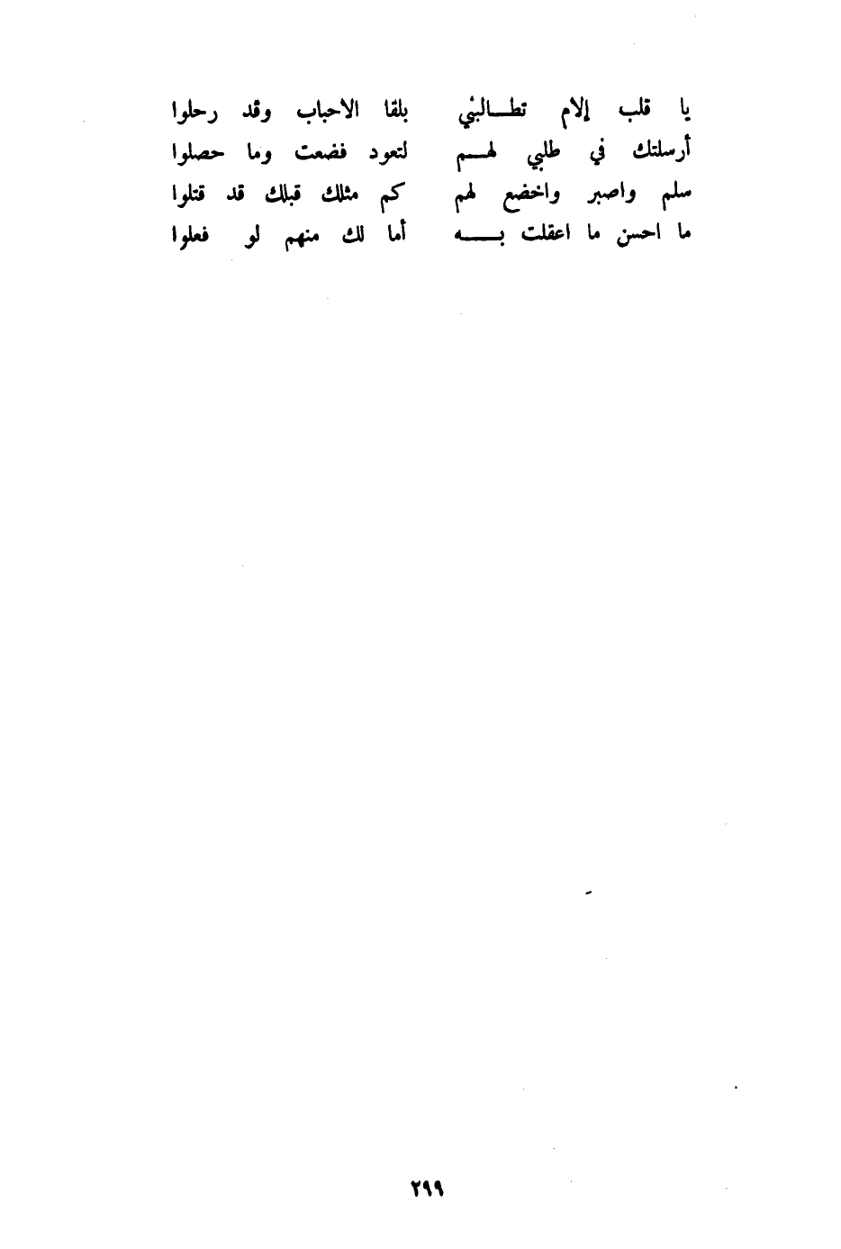 (يَا قلب إلام تطالبني ... بلقا الأحباب وَقد رحلوا)