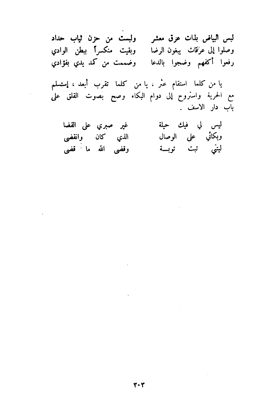 (لَيْسَ لي فِيك حِيلَة ... غير صبري على القضا)