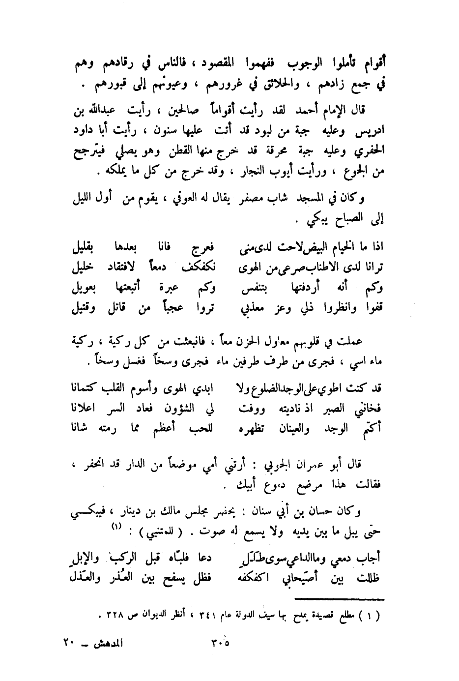 وَكَانَ حسان بن أبي سِنَان يحضر مجْلِس مَالك بن دِينَار فيبكي حَتَّى يبل مَا بَين يَدَيْهِ وَلَا يسمع لَهُ صَوت للمتنبي