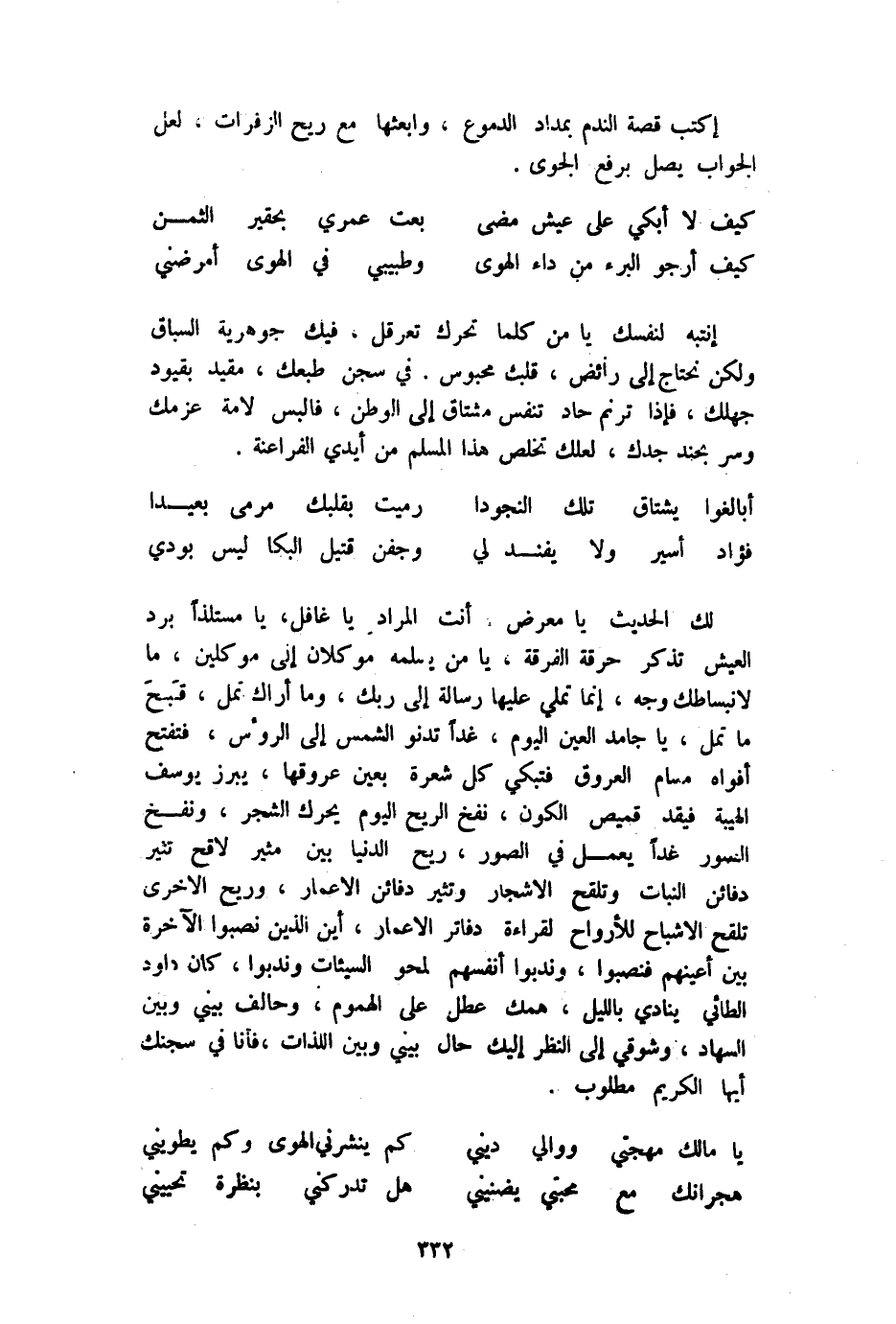 (كَيفَ لَا أبْكِي على عَيْش مضى ... بِعْت عمري بحقير الثّمن)