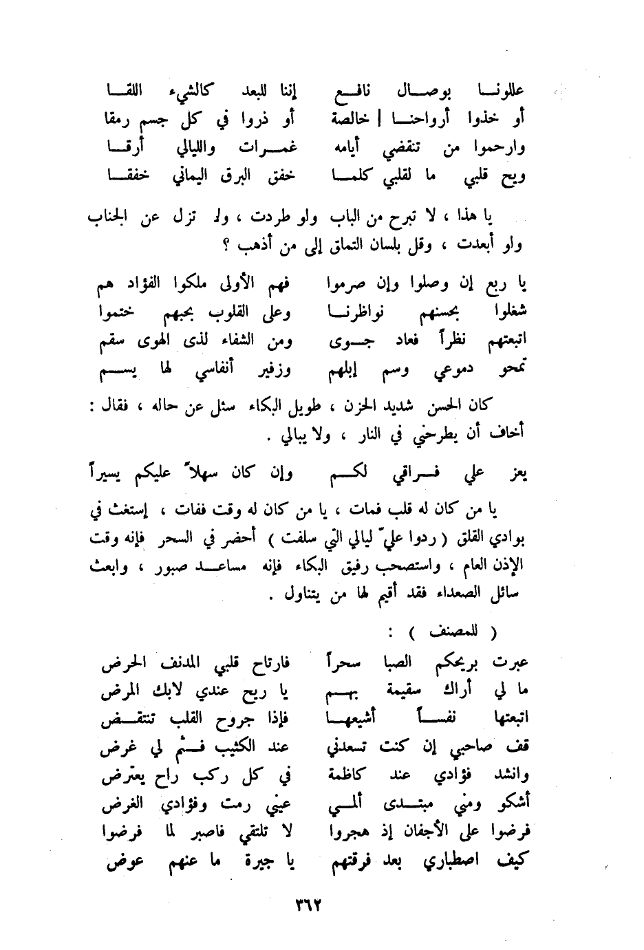 (كَيفَ اصْطِبَارِي بعد فرقتهم ... يَا جيرة مَا عَنْهُم عوض)