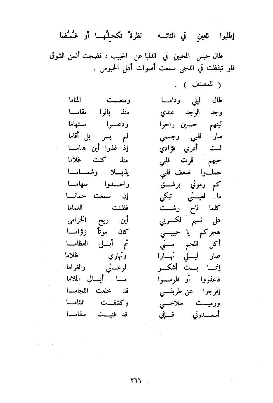 (هجركم يَا حَبِيبِي ... كَانَ موتا زؤاما)