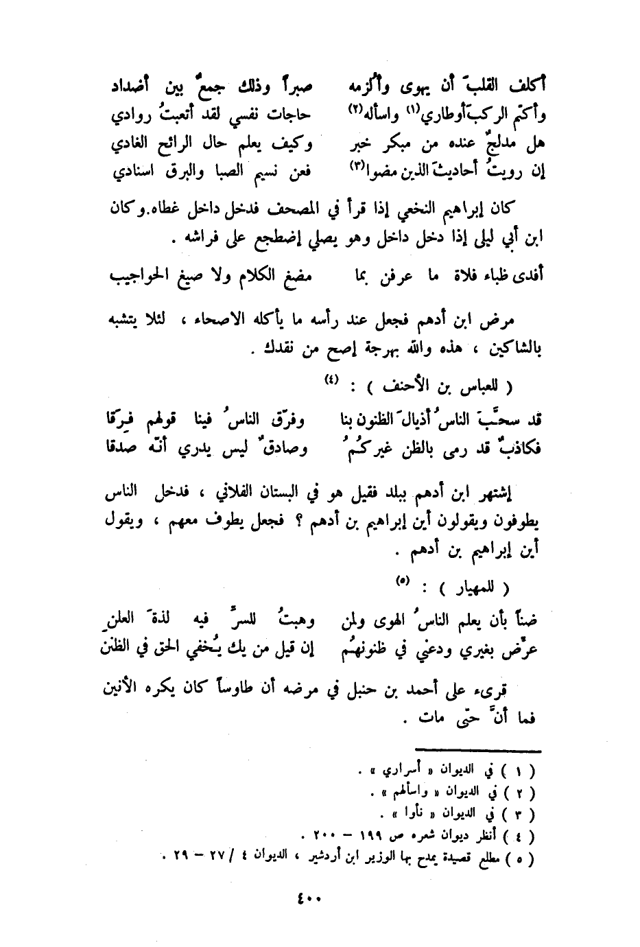 (أكلف الْقلب أَن يهوى وألزمه ... صبرا وَذَلِكَ جمع بَين أضداد)