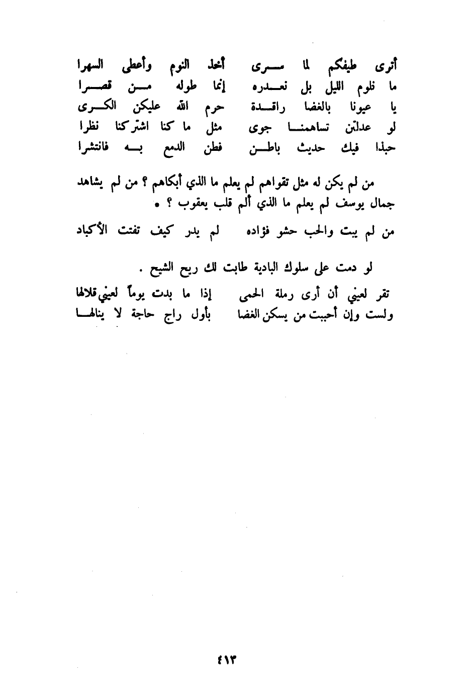 (يَا عيُونا بالغضا رَاقِدَة ... حرم الله عليكن الْكرَى)