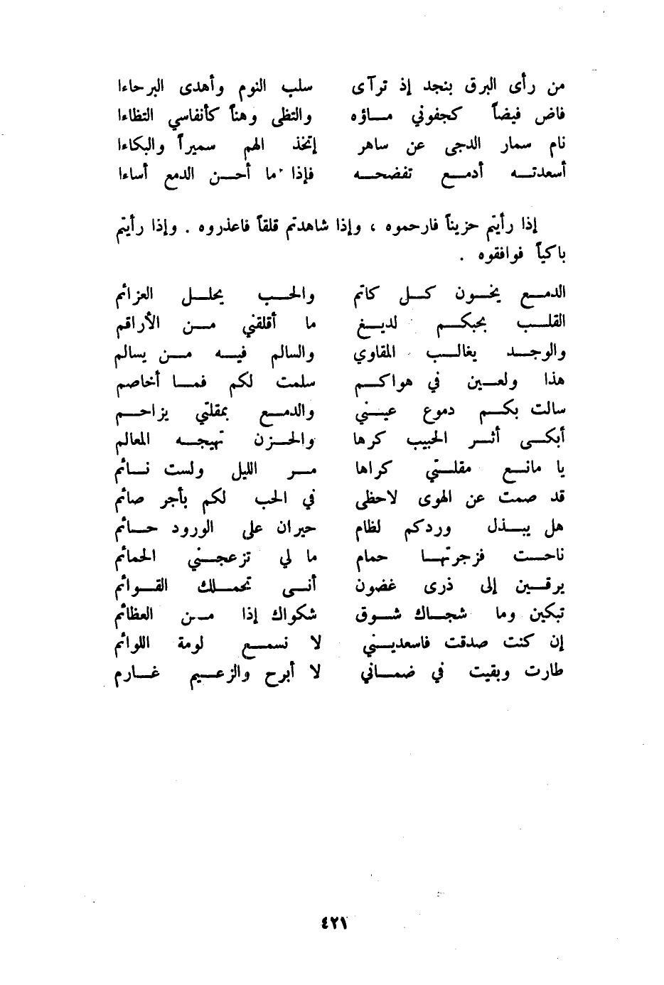 (الدمع يخون كل كاتم ... وَالْحب يحلل العزائم)