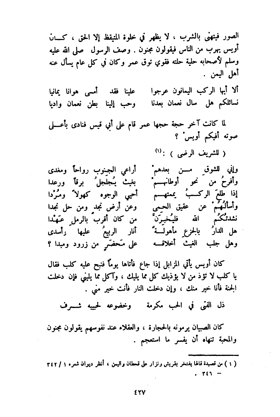 الصُّور فيتهنى بالشرب لَا يظْهر فِي خلْوَة المتيقظ إِلَّا الْحق كَاد أويس يهرب من النَّاس فَيَقُولُونَ مَجْنُون وصف الرَّسُول صلى الله عَلَيْهِ وَسلم لأَصْحَابه حلية حلته فقوي توق عمر وَكَانَ فِي كل عَام يسْأَل عَنهُ أهل الْيمن