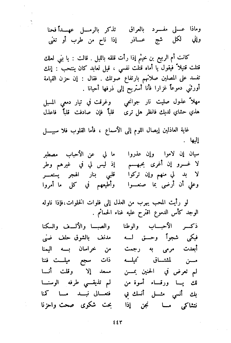 (مهلا عذول صليت نَار جوانحي ... وغرقت فِي تيار دمعي المسبل)