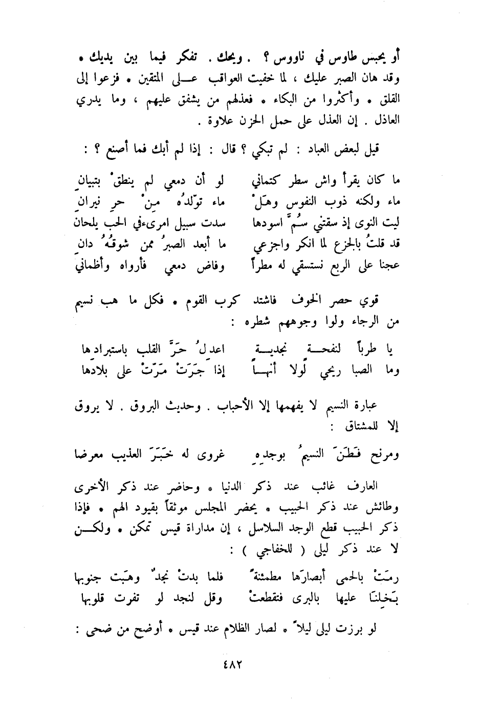 عبارَة النسيم لَا يفهمها إِلَّا الأحباب وَحَدِيث البروق لَا يروق إِلَّا للمشتاق