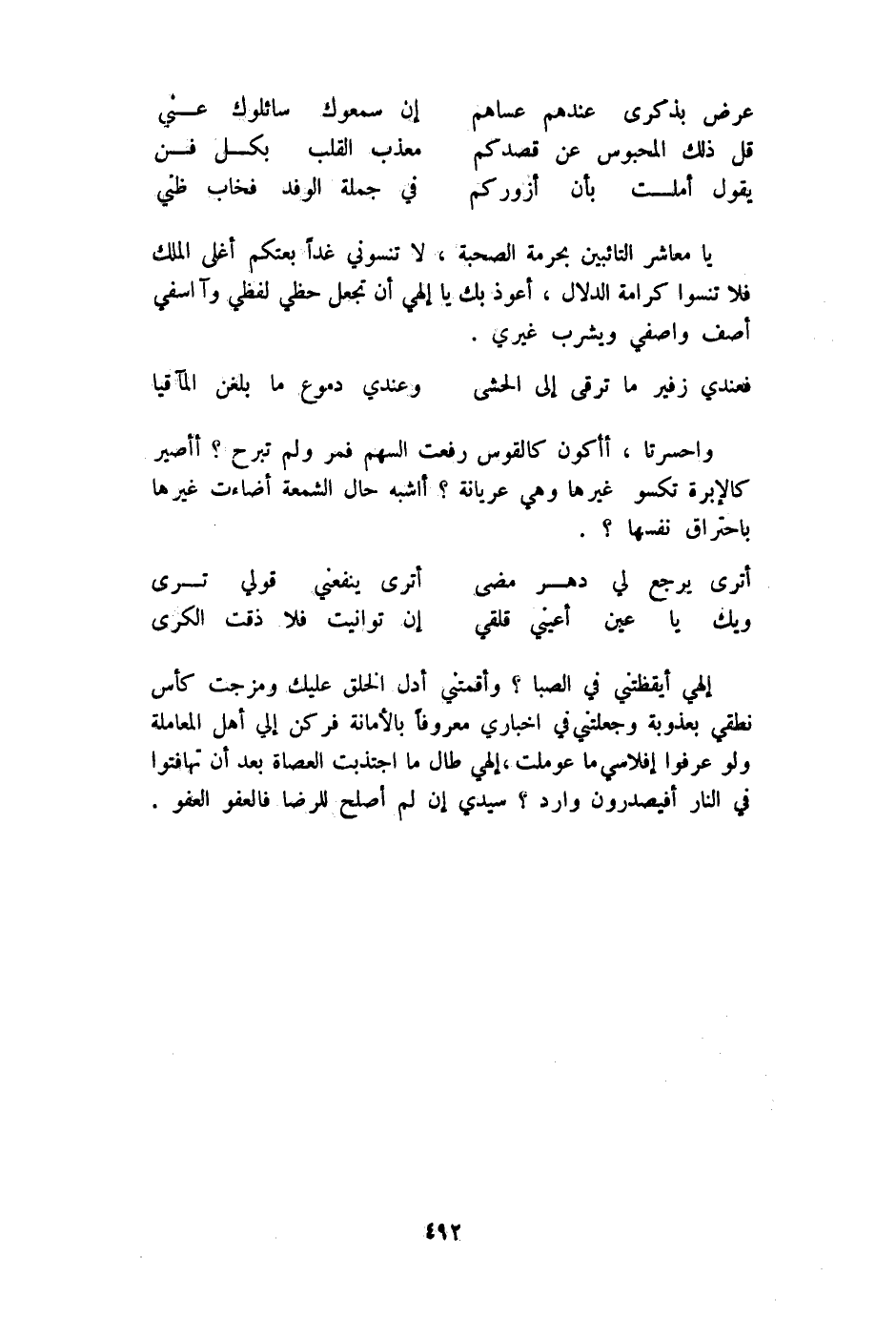 (يَقُول أملت بِأَن أزوركم ... فِي جملَة الْوَفْد فخاب ظَنِّي)
