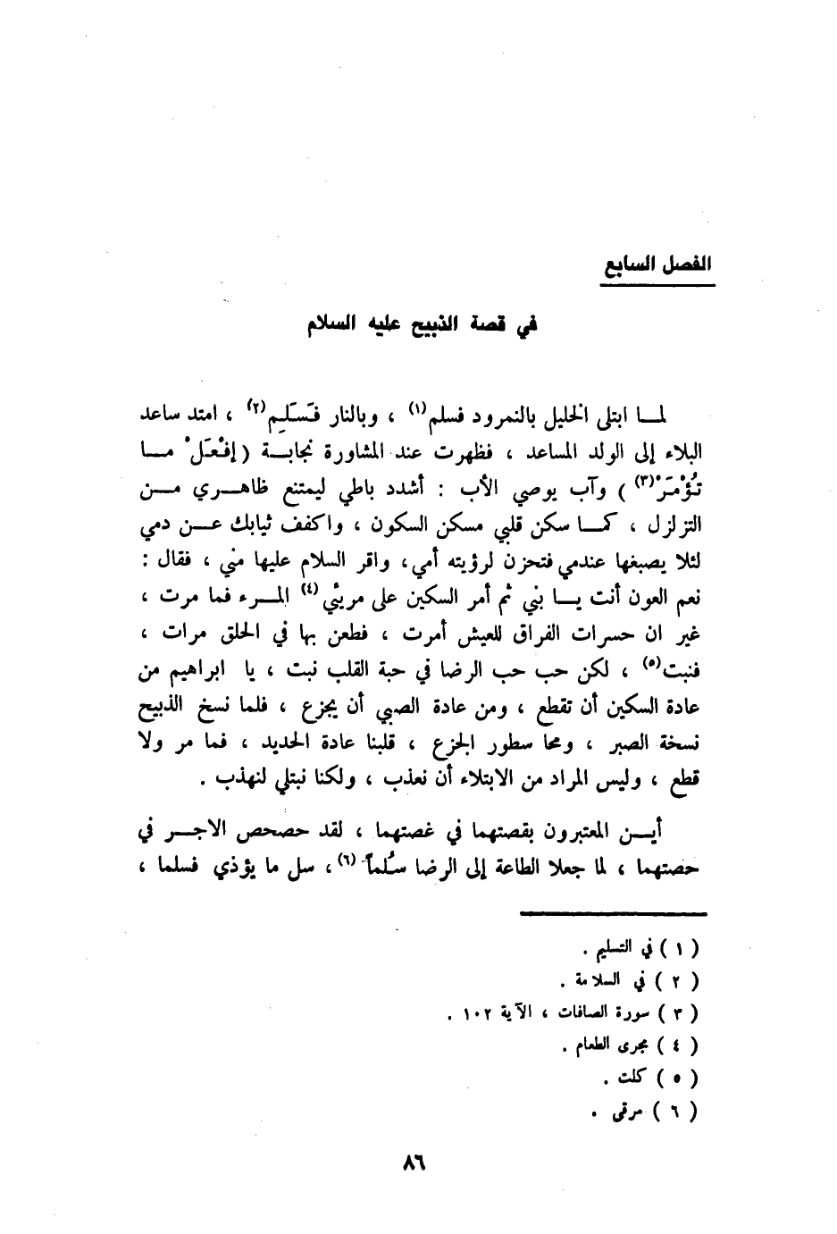 الْفَصْل السَّابِع فِي قصَّة الذَّبِيح عَلَيْهِ السَّلَام