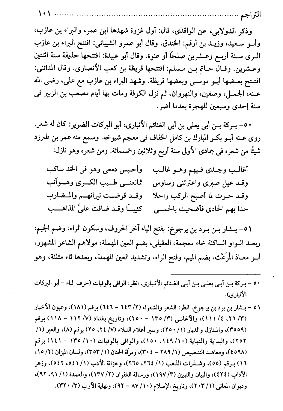 بشار بن برد: بن يرجوخ بفتح الياء آخر الحروف وسكون الراء وضم الجيم وبعد الواو الساكنة خاء معجمة العقيلي بضم العين المهملة. مولاهم الشاعر المشهور، أبو معاذ المرعث بضم الميم وفتح الراء وتشديد العين المهملة وبعدها ثاء مثلثة وهو