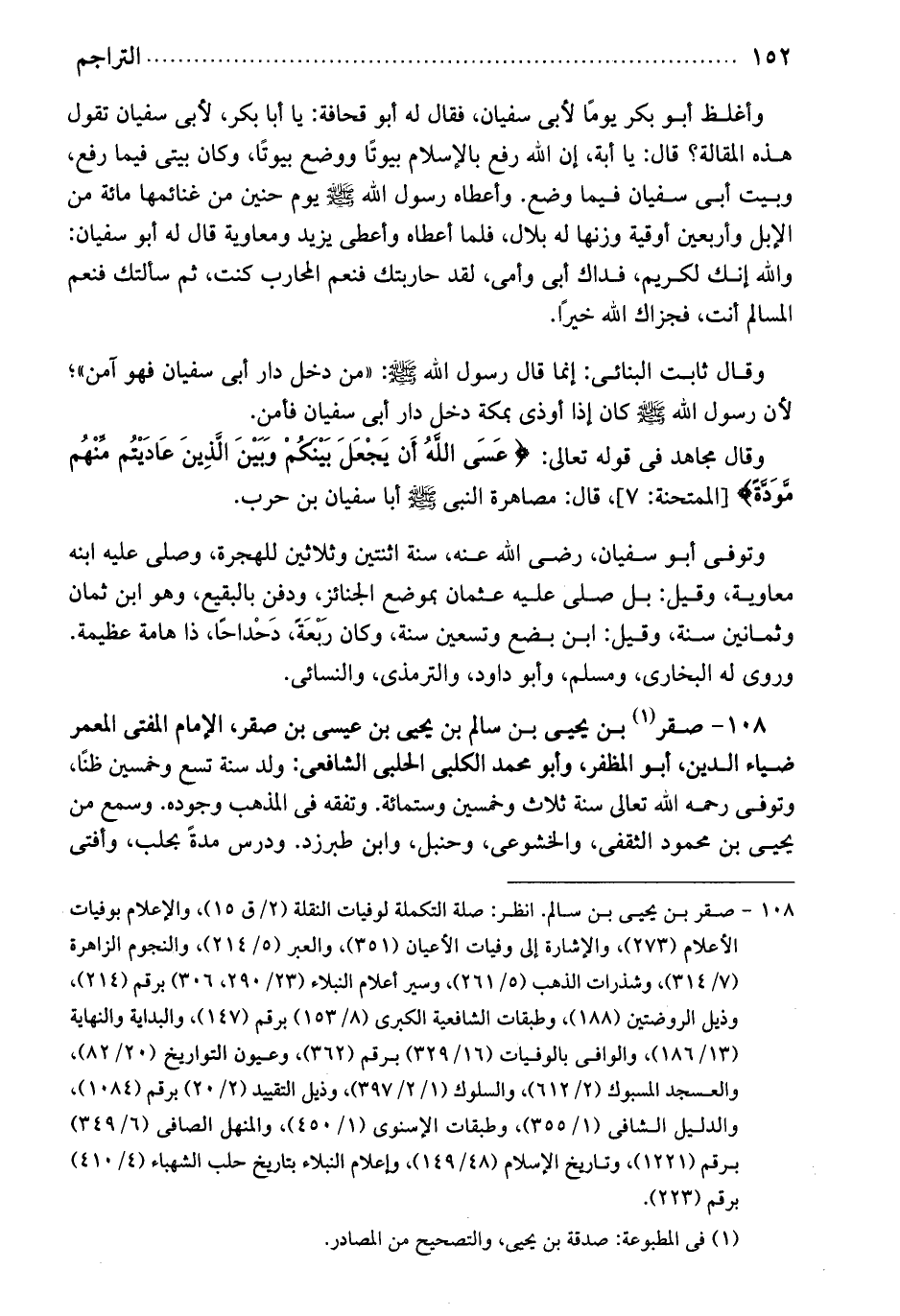 بن سالم بن يحيى بن عيسى بن صقر. الإمام المفتي المعمر ضياء الدين. أبو المظفر، وأبو محمد الكلبي الحلبي الشافعي. ولد سنة تسع وخمسين، ظناً. وتوفي رحمه الله تعالى سنة ثلاث وخمسين وستمائة. وتفقه في المذهب وجوده. وسمع من يحيى بن محمود الثقفي، والخشوعي، وحنبل، وابن طبرزد. ودرس مدةً بحلب، وأفتى