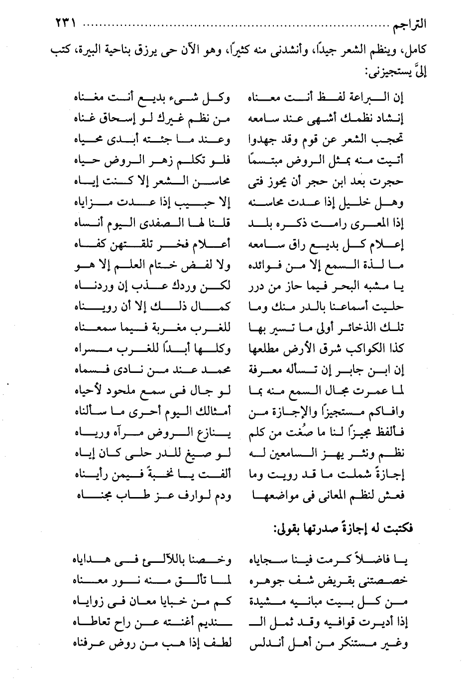 وافاكم مستجيزاً والإجازة من ... أمثالك اليوم أحرى ما سألناه