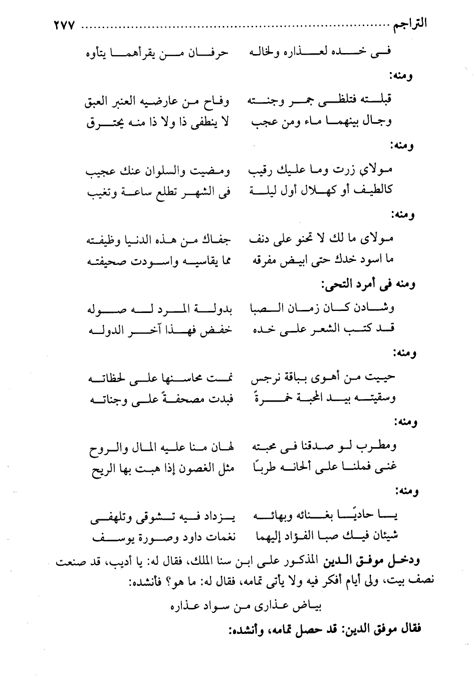 فقال موفق الدين: قد حصل تمامه. وأنشده: