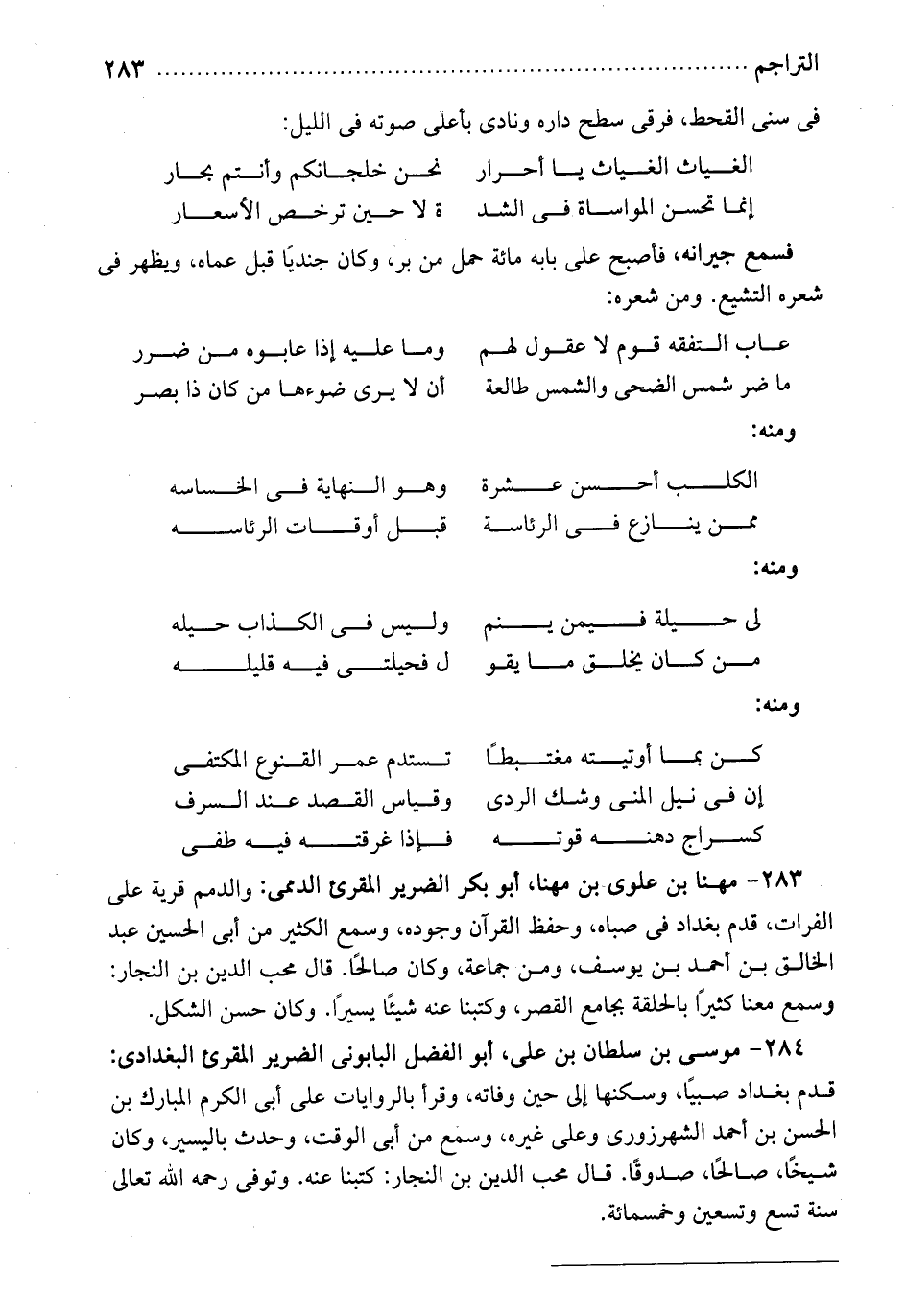مهنا بن علوي: بن مهنا. أبو بكر. الضرير المقرئ الدممي الوالدمم قرية على الفرات. قدم بغداد في صباه، وحفظ القرآن وجوده، وسمع الكثير من أبي الحسين عبد الخالق بن أحمد بن يوسف، ومن جماعة. وكان صالحاً. قال: محب الدين ابن النجار: وسمع معنا كثيراً بالحلقة بجامع القصر، وكتبنا عنه شيئاً يسيراً. وكان حسن الشكل.