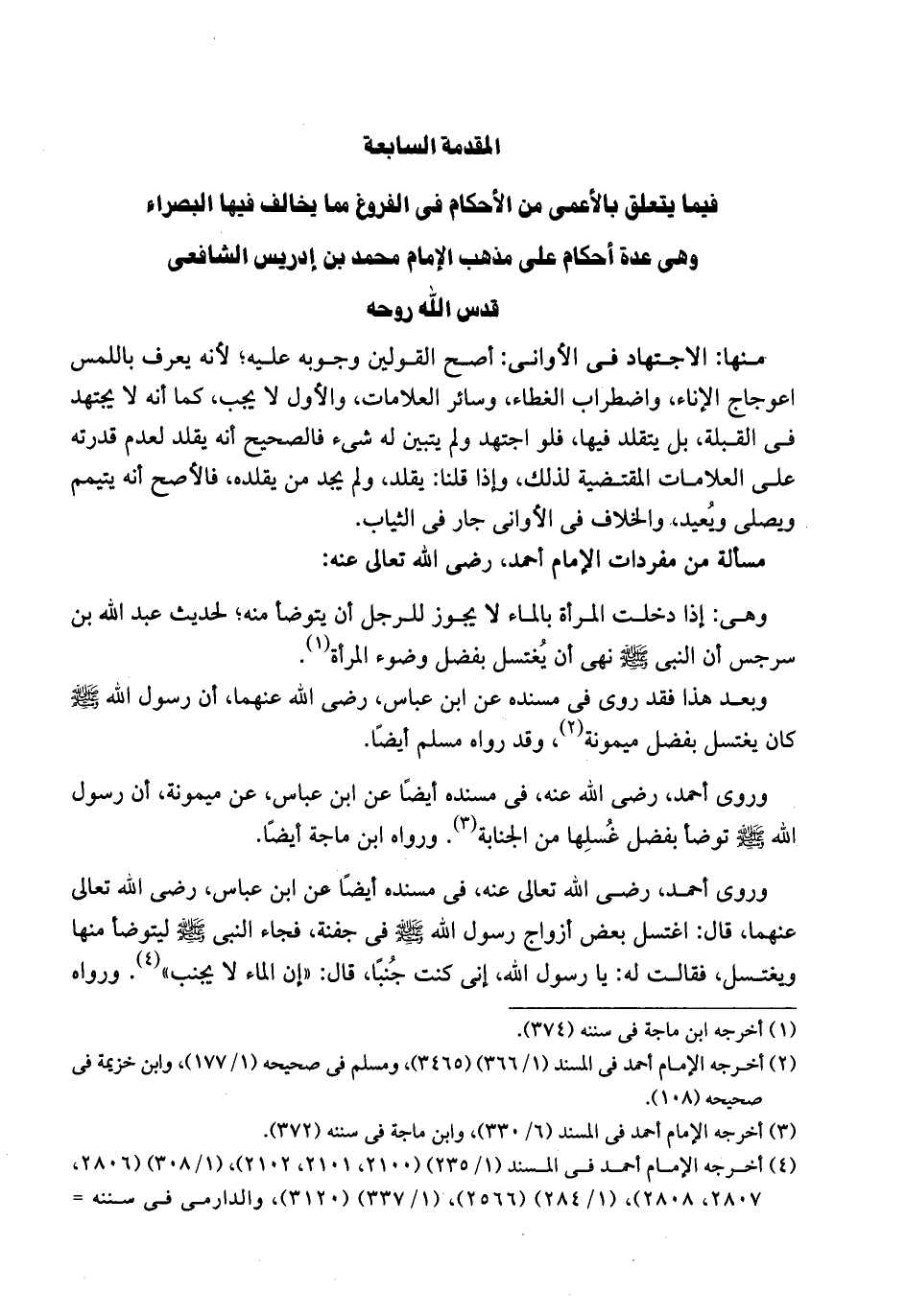 وهي عدة أحكام على مذهب الإمام محمد بن إدريس الشافعي قدس الله روحه منها