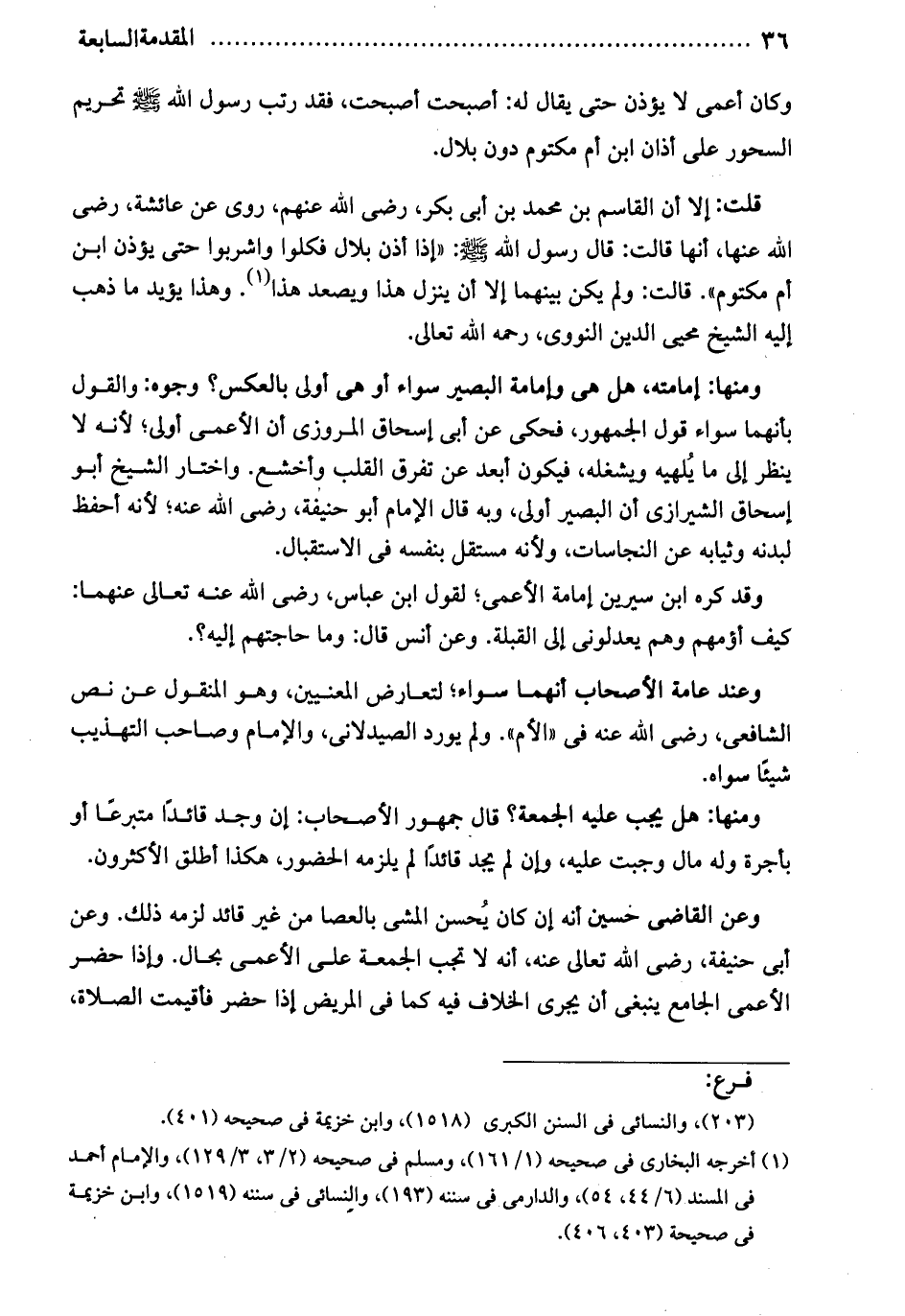 ومنها إمامته هل هي وإمامة البصير سواء، أو هي أولى بالعكس. وجوه.