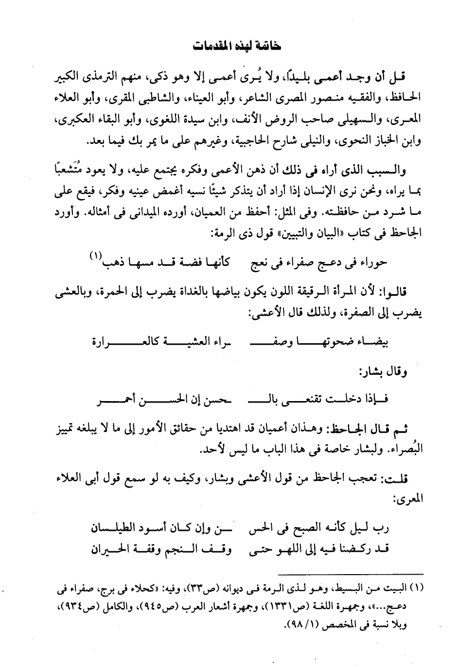 قلت: تعجب الجاحظ من قول الأعشى وبشار. وكيف به لو سمع قول أبي العلاء المعري:
