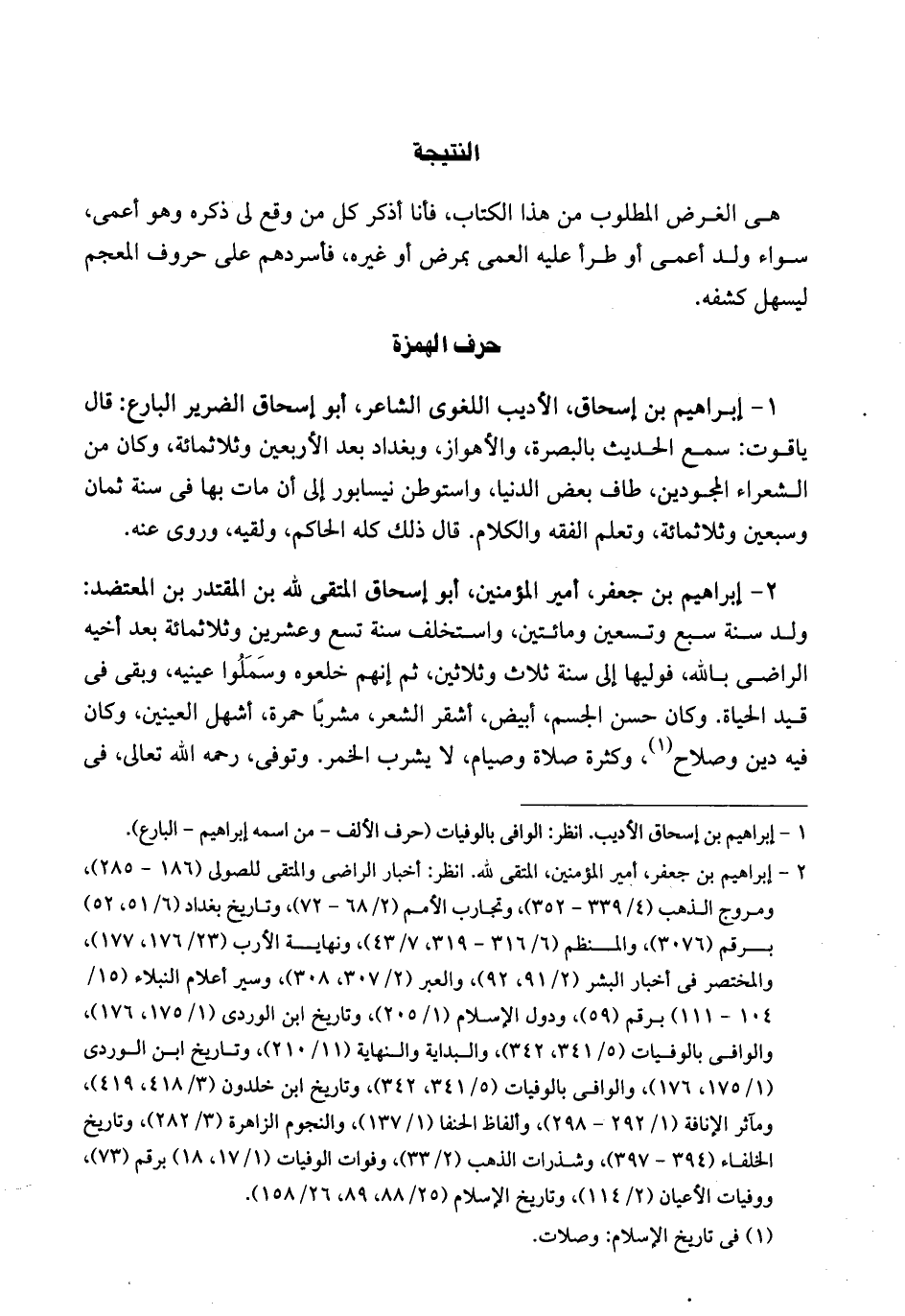 هي الغرض المطلوب من هذا الكتاب. فأنا أذكر كل من وقع لي ذكره وهو أعمى. سواء ولد أعمى أو طرأ عليه العمى بمرض أو غيره.