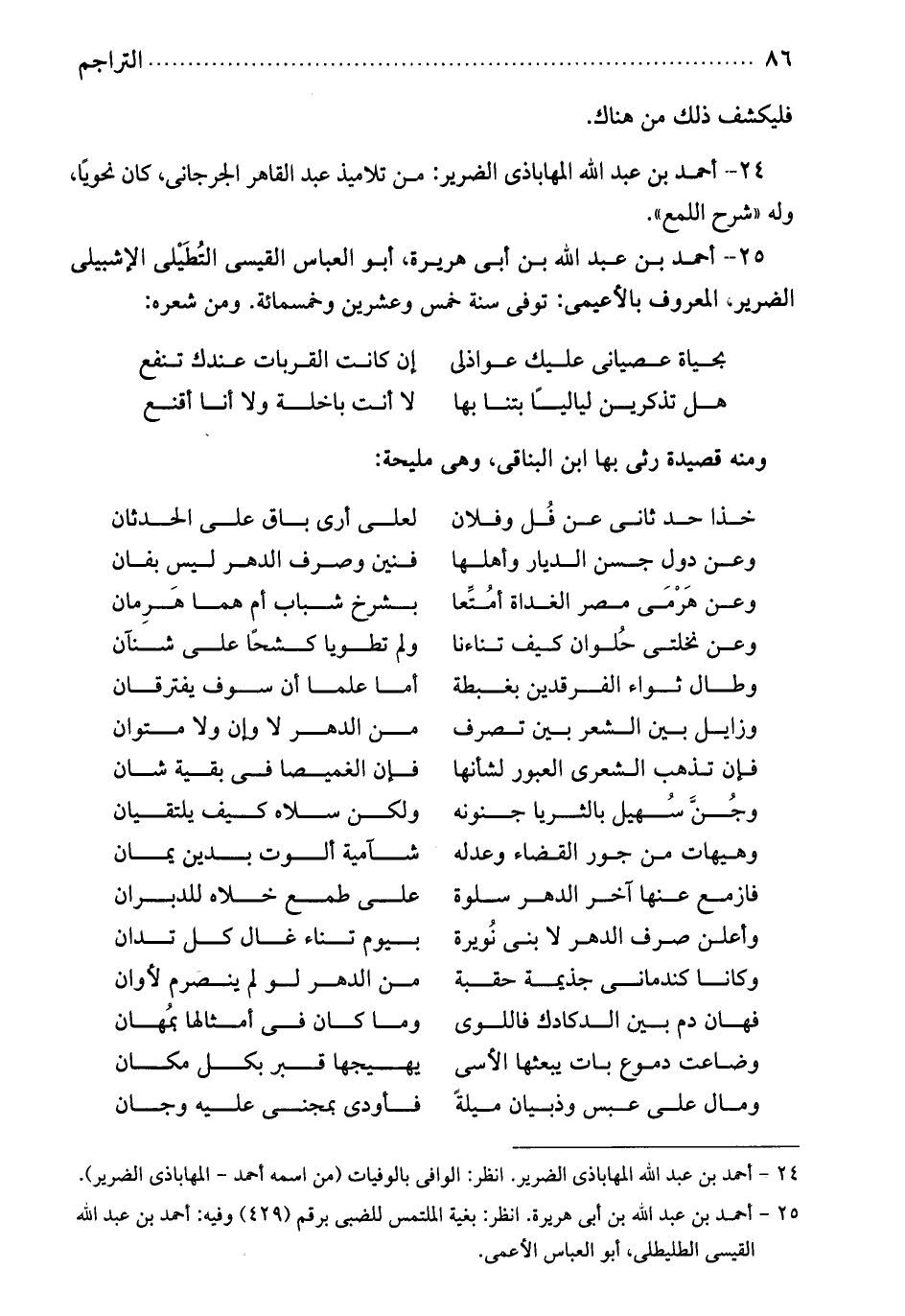 ومنه قصيدة رثى بها ابن البناقي وهي مليحة:
