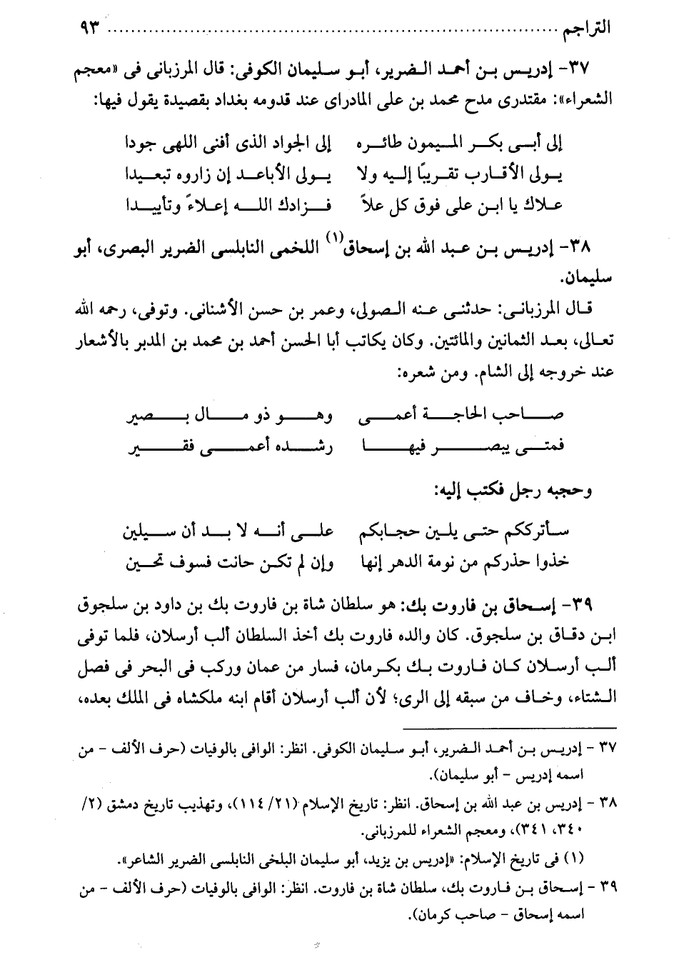 إدريس بن أحمد: الضرير أبو سليمان الكوفي. قال المرزباني في معجم الشعراء: مقتدري مدح محمد بن علي المادراي، عند قدومه بغداد بقصيدة يقول فيها: