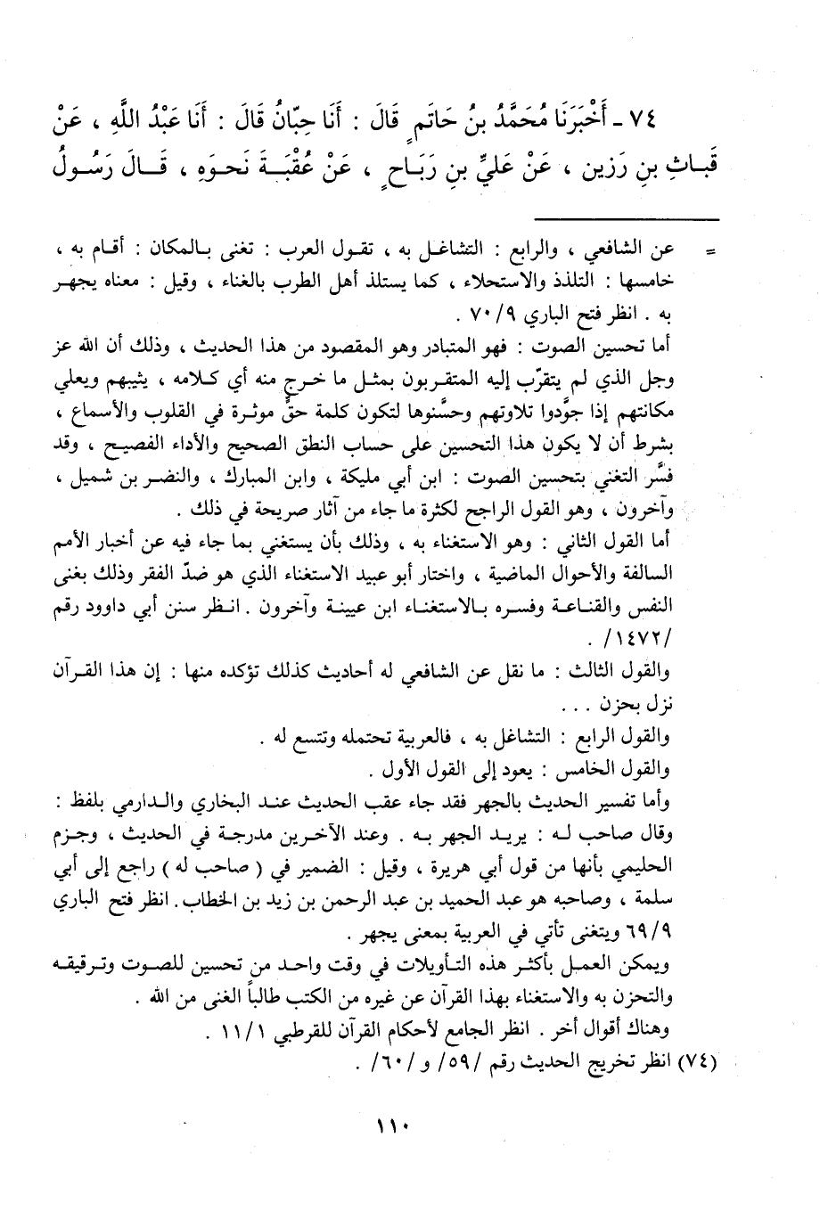 74 - أخبرنَا مُحَمَّد بن حَاتِم قَالَ أَنا حبَان قَالَ أَنا عبد الله عَن قباث بن رزين عَن عَليّ بن رَبَاح عَن عقبَة نَحوه قَالَ رَسُول