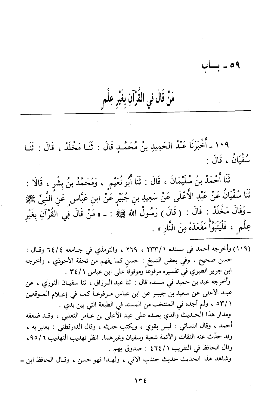 - صَلَّى اللَّهُ عَلَيْهِ وَسَلَّم َ - 59 بَاب من قَالَ فِي الْقُرْآن بِغَيْر علم - صَلَّى اللَّهُ عَلَيْهِ وَسَلَّم َ -