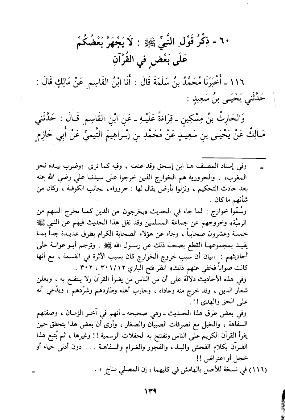 60 - ذكر قَول النَّبِي لَا يجْهر بَعْضكُم على بعض فِي الْقُرْآن