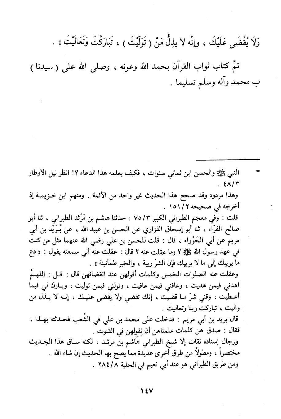 تمّ كتاب ثَوَاب الْقُرْآن بِحَمْد الله وعونه وَصلى الله على سيدنَا مُحَمَّد وَآله وَسلم تَسْلِيمًا