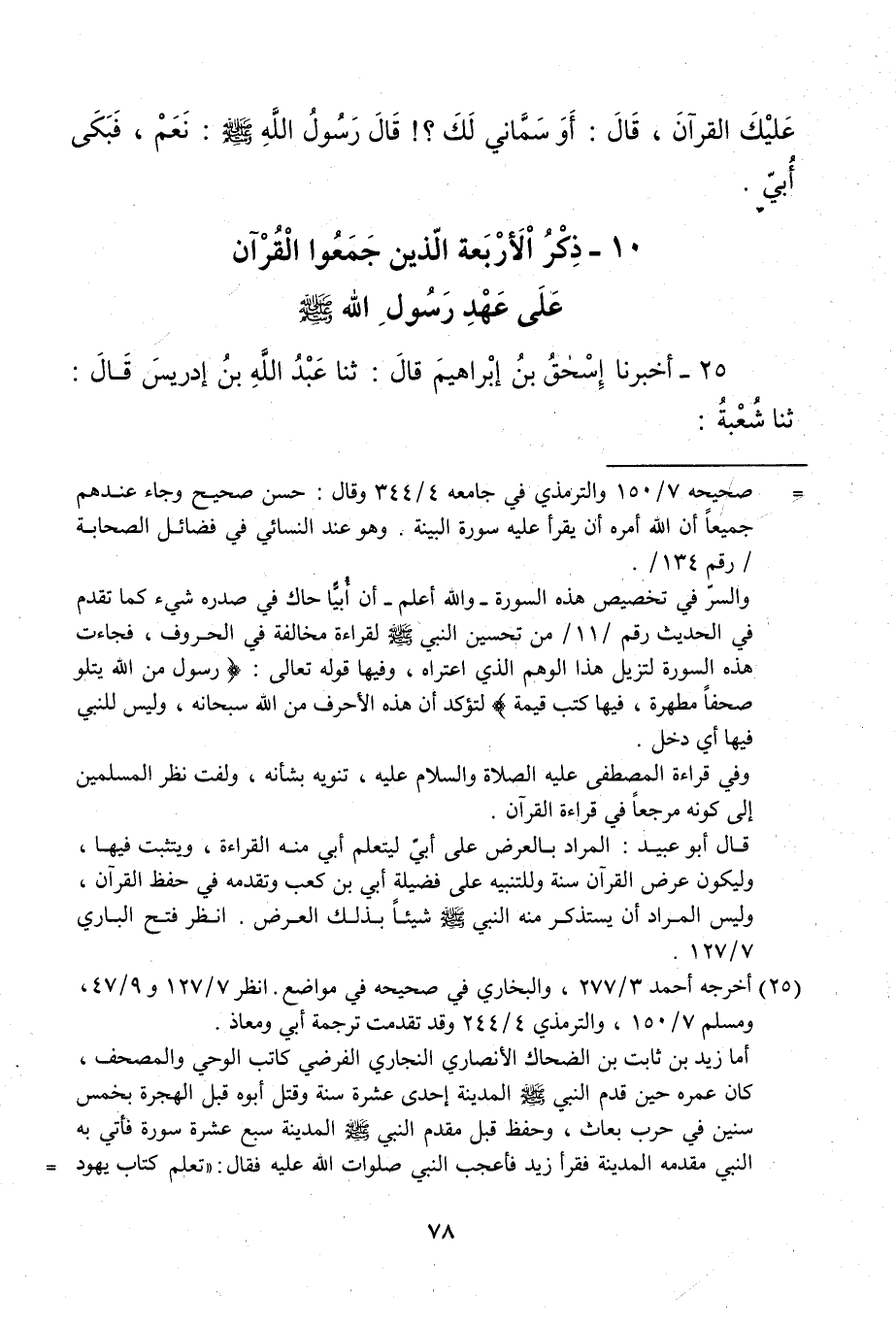 10 - ذكر الْأَرْبَعَة الَّذين جمعُوا الْقُرْآن على عهد رَسُول الله
