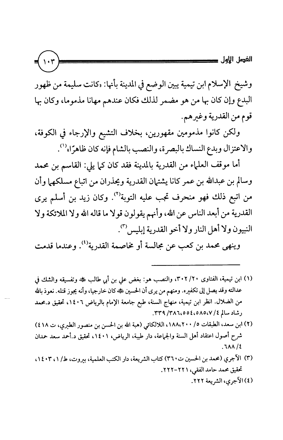 (3) الآجري (محمد بن الحسين ت. 36) كتاب الشريعة، دار الكتب العلمية، بيروت، ط/ 1، 03 4 1،