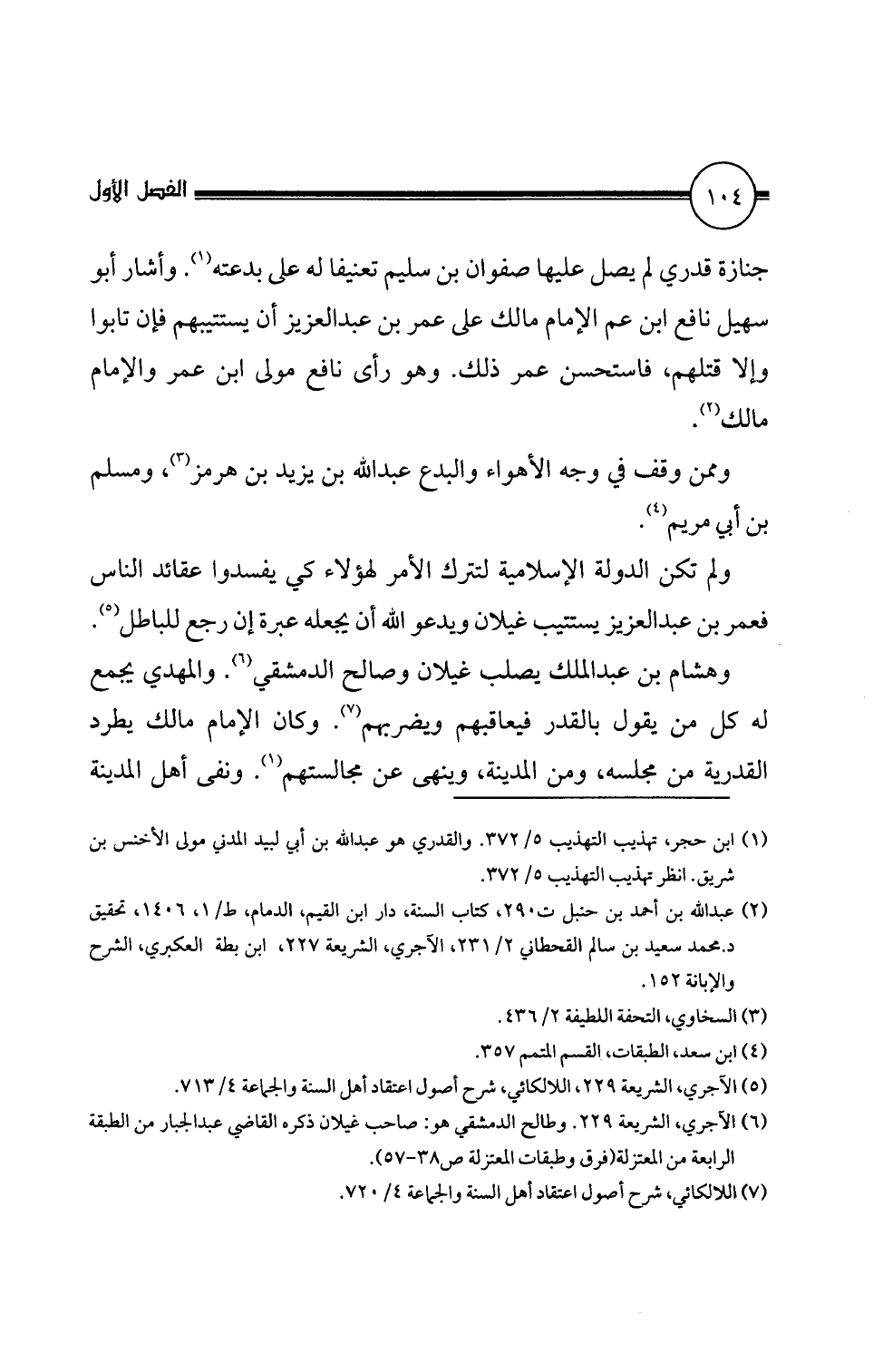 (6) الآجري، الشريعة 229. وطالح الدمشقي هو: صاحب غيلان ذكره القاضي عبدالجبار من الطبقة