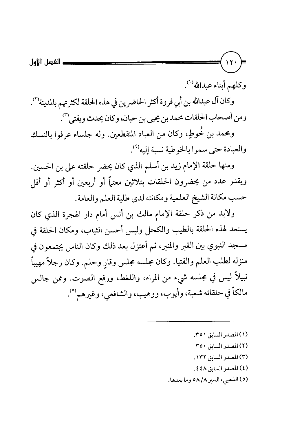 ولابد من ذكر حلقة الإمام مالك بن أنس أمام دار الهجرة الذي كان