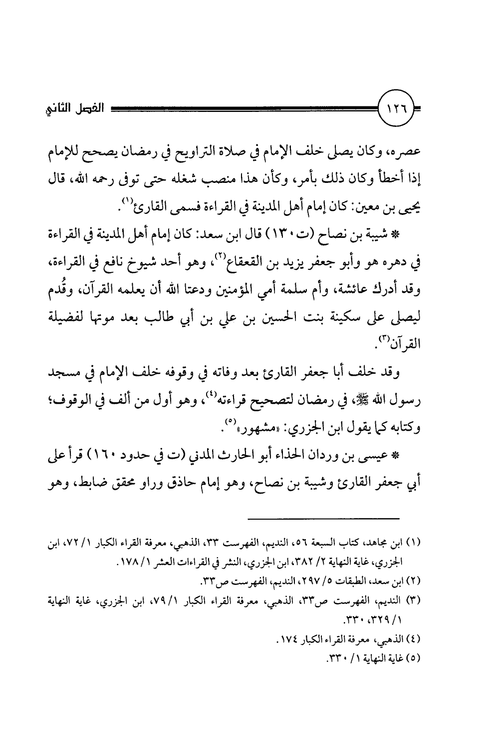 (3) النديم، الفهرست ص 33، الذهبي، معرفة القراء الكبار 79/ 1، ابن الجزري، غاية النهاية