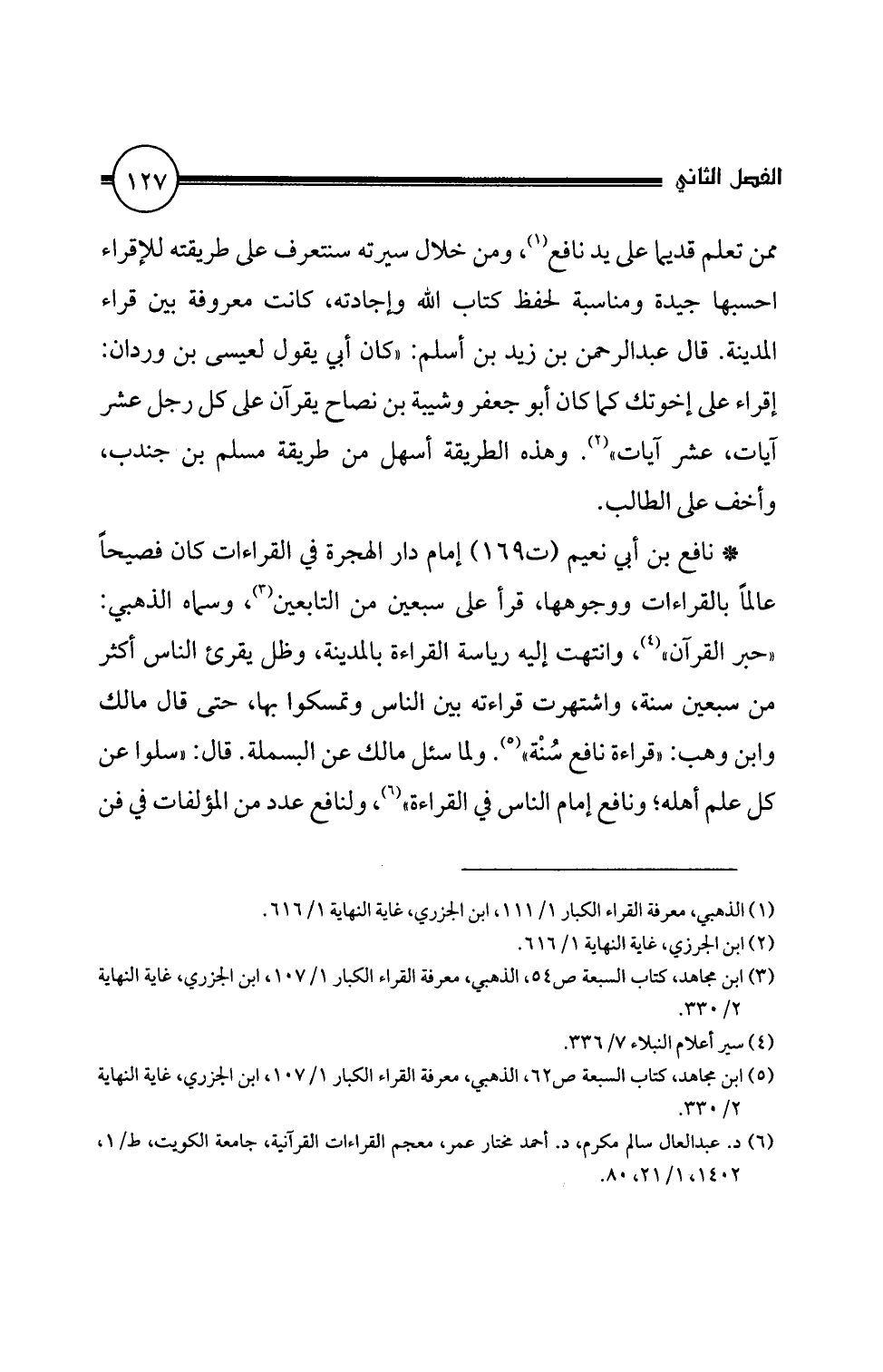 (3) ابن مجاهد، كتاب السبعة ص 4 5، الذهبي، معرفة القراء الكبار 1/ 7 0 1، ابن الجزري، غاية النهاية