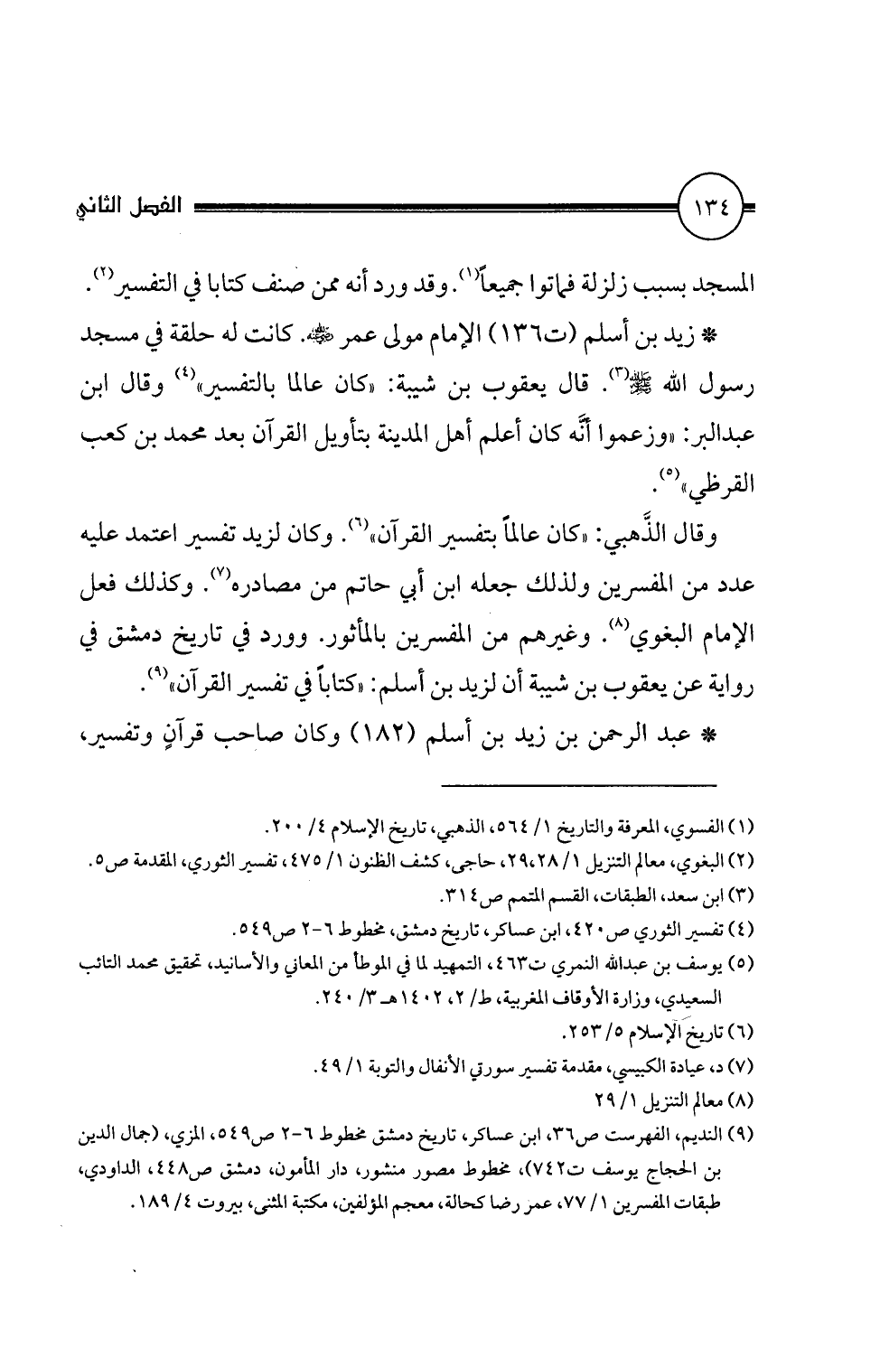* زيد بن أسلم (ت 136) الإمام مولى عمر لححه. كانت له حلقة في مسجد
