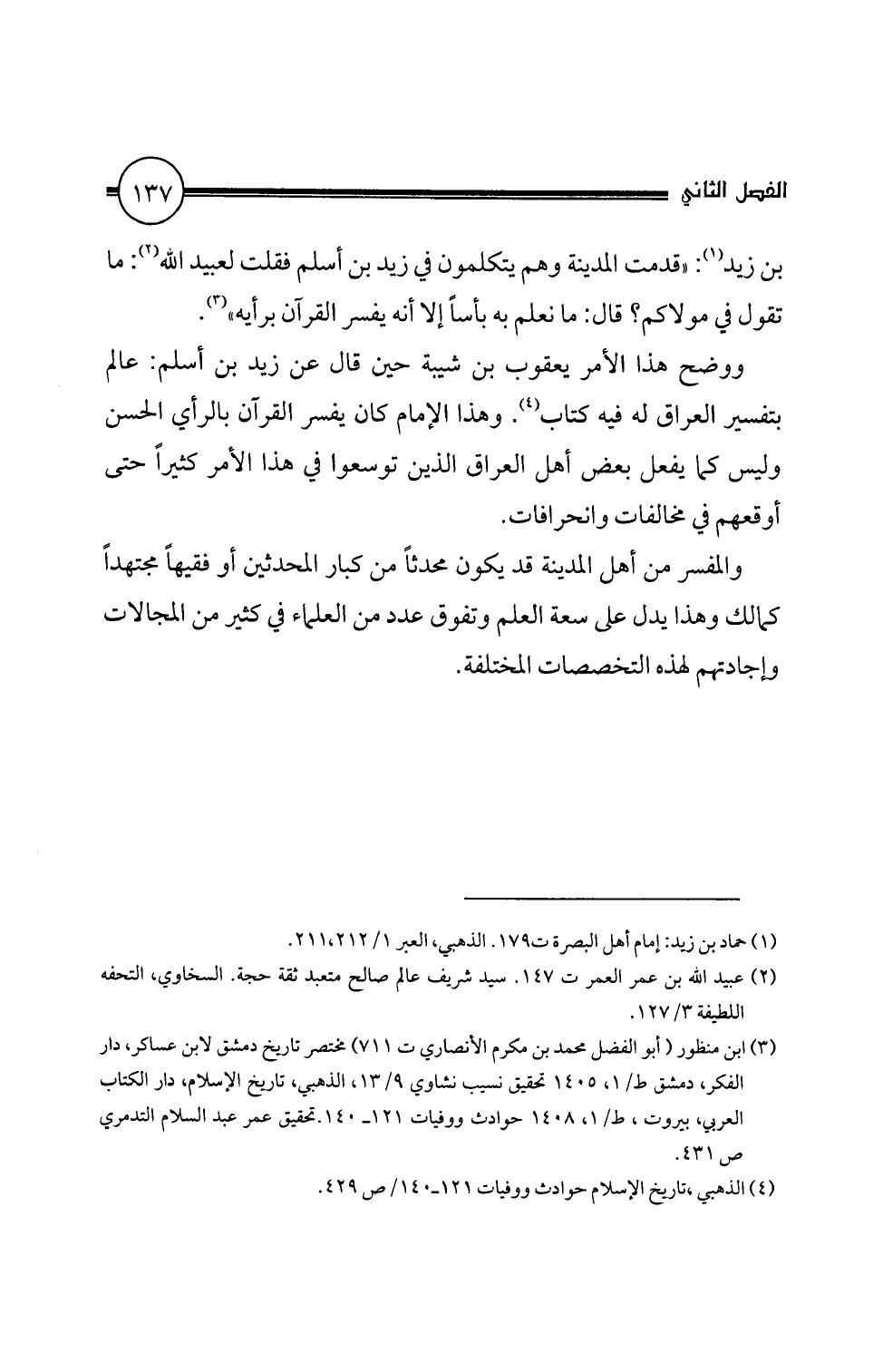 بتفسير العراق له فيه كتاب (4). وهذا الإمام كان يفسر القران بالرأي الحسن