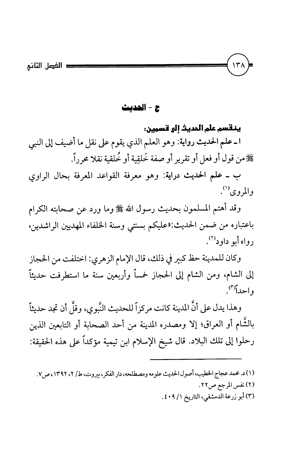 (1) د. محمد عجاج الخطيب، أصول الحديث علومه ومصطلحه، دار الفكر، بيروت، ط/ 2، 1392، ص 7.