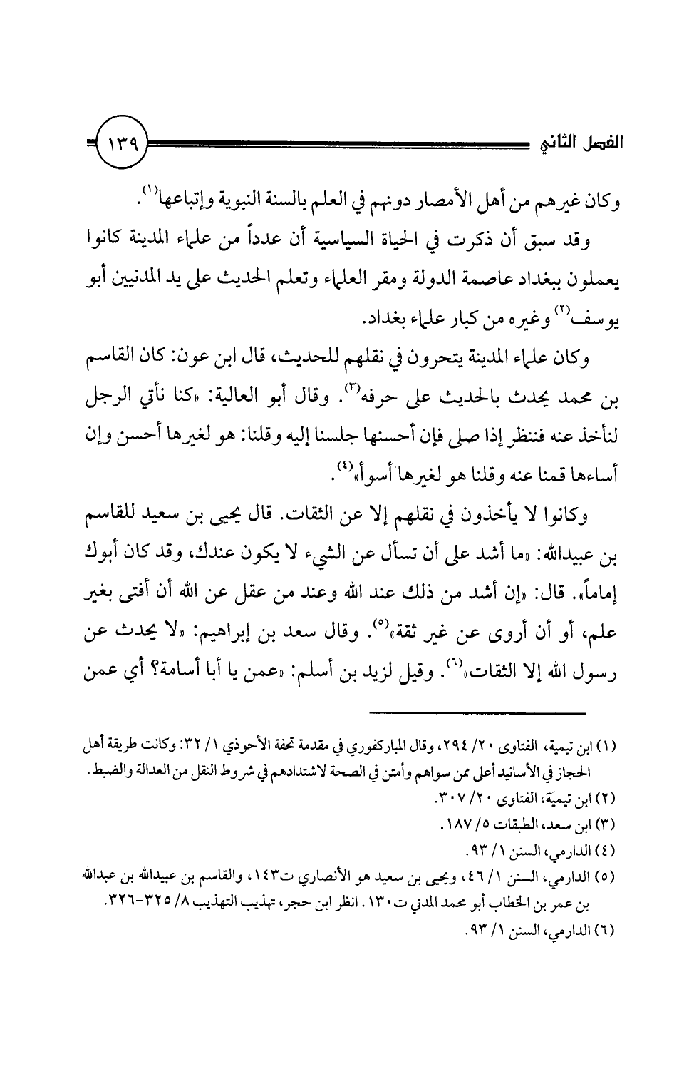 (5) الدارمي، السنن 1/ 46، ويحرو بن سعيد هو الأنصاري ت 43 1، والقاسم بن عبيدالله بن عبدالله