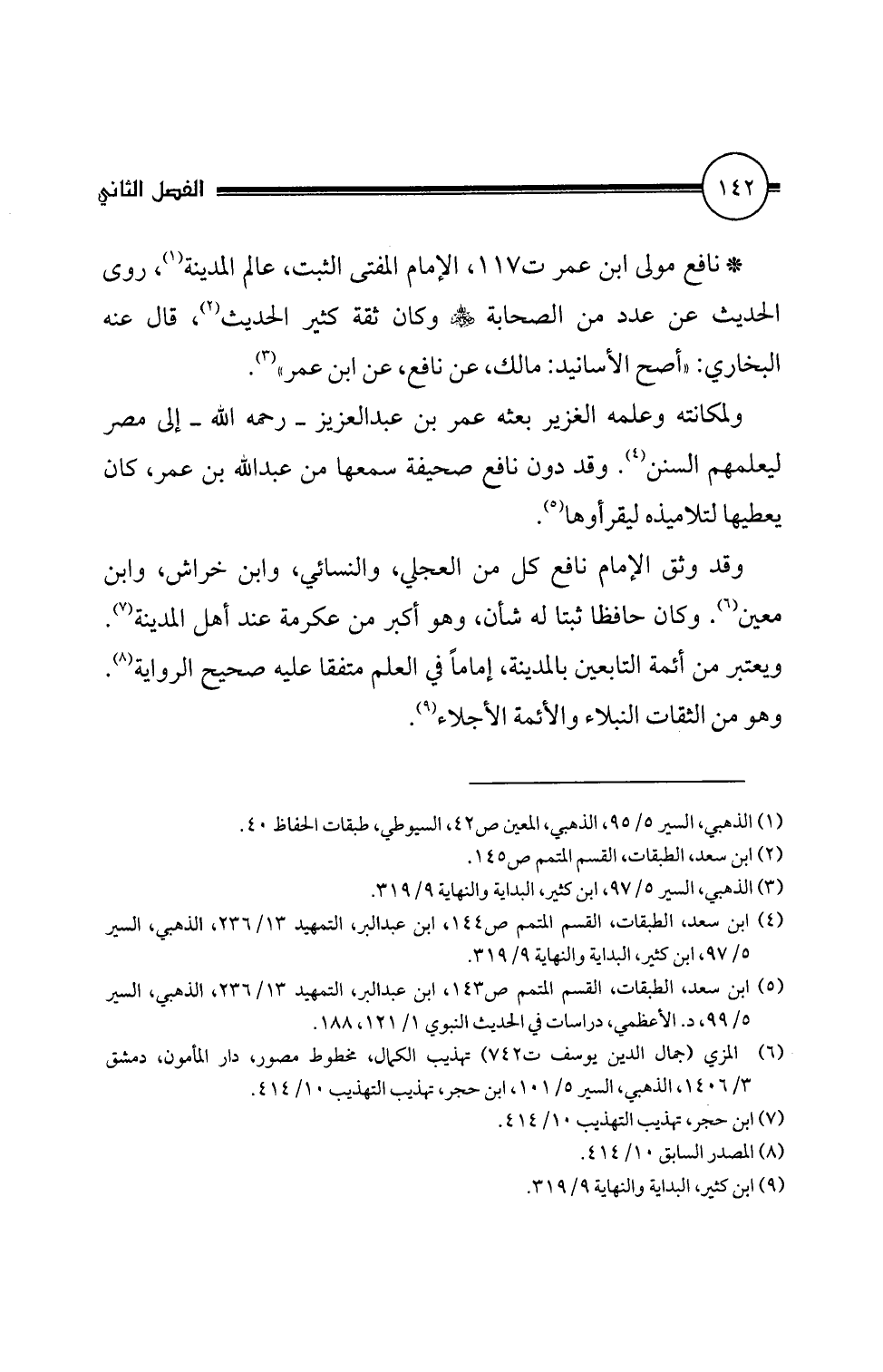 * نافع مولى ابن عمر ت 117، الإمام المفتى الثبت، عالم المدينة (1)، روى