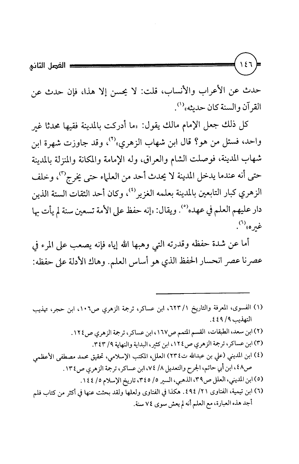 (1) الفسوى، المعرفة والتاريخ 623/ 1، ابن عساكر، ترجمة الزهري ص 106، ابن حجر، تهذيب